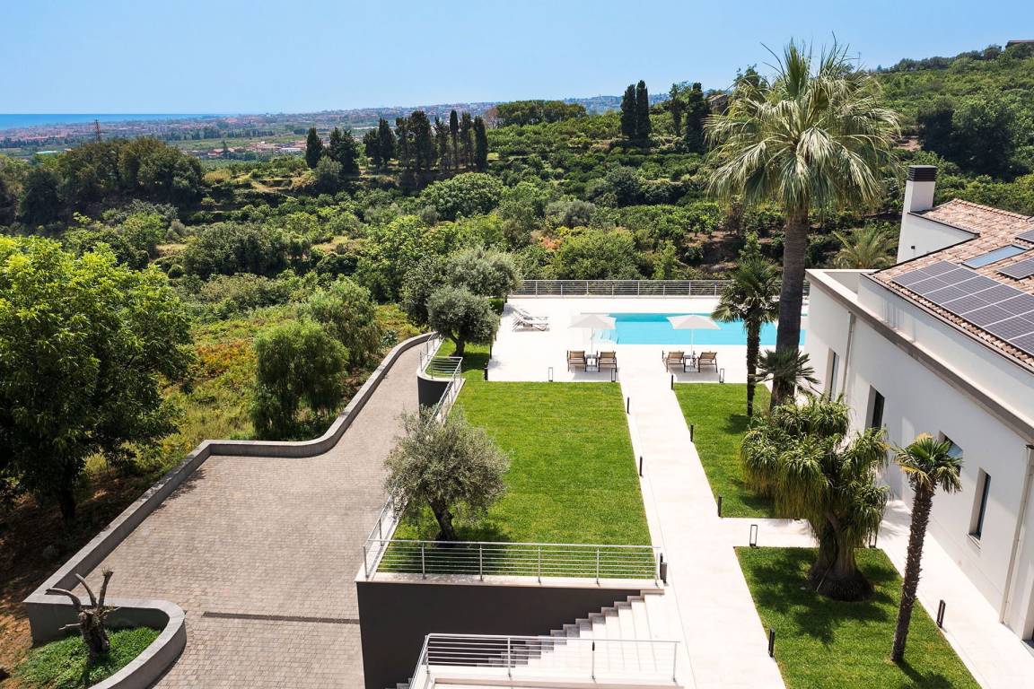Villa Cloris liegt südlich von Taormina, 3 km von der Küste entfernt. Das Anwesen befindet sich in einem großen Garten und bietet Ausblicke auf das Tal und das Meer.