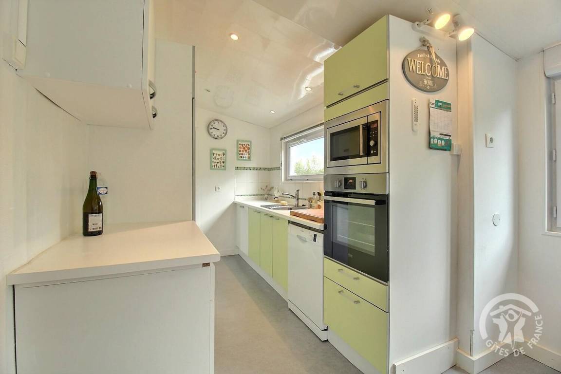 Einbauküche mit Essbereich und direktem Zugang zur Terrasse, Badezimmer (Dusche, WC und Waschmaschine), 1 separates Wohnzimmer. 1 Schlafzimmer (1 Bett 140x190).