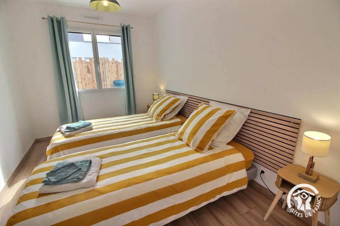 • Ein zweites Schlafzimmer mit zwei 80 x 200 cm großen Einzelbetten.