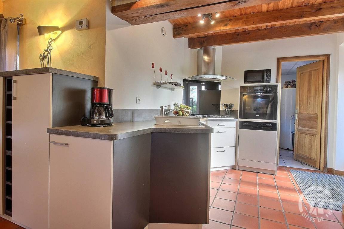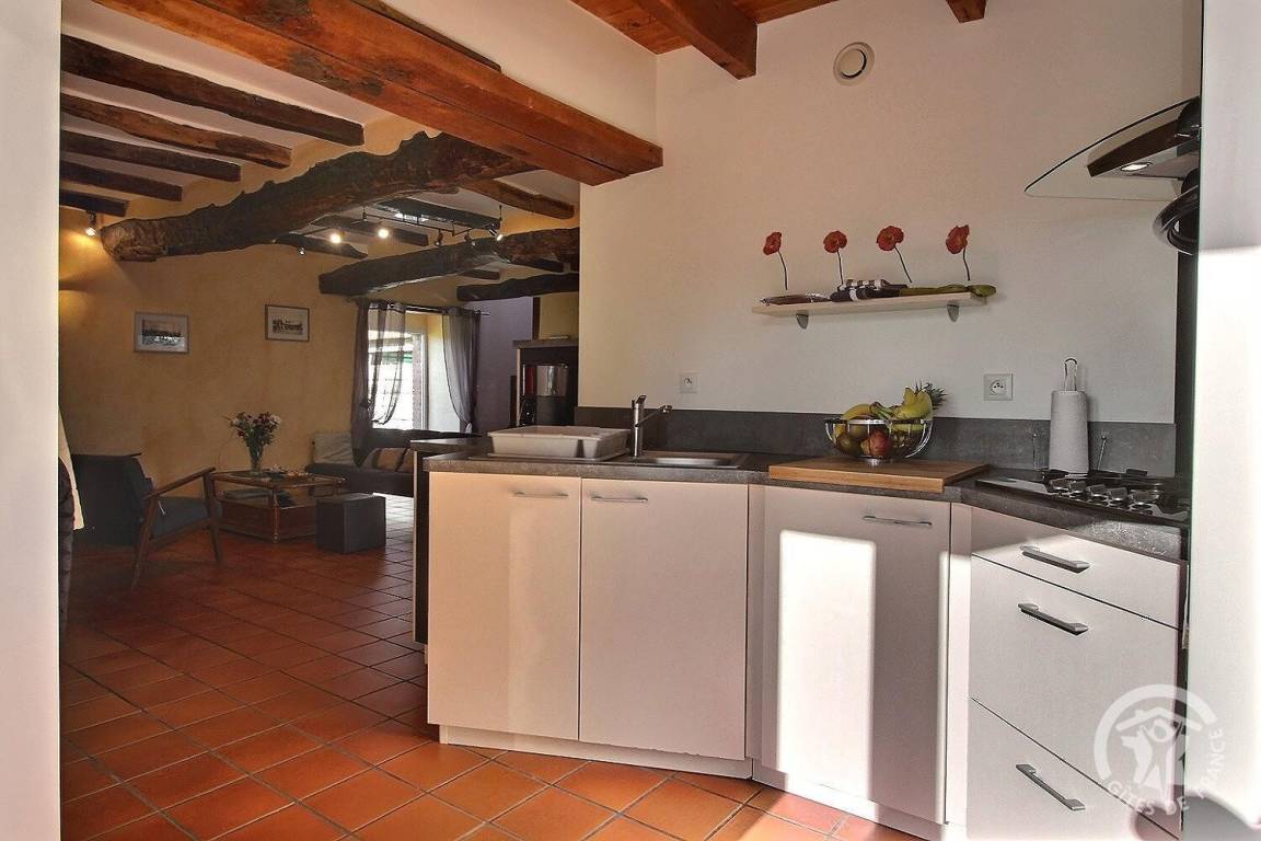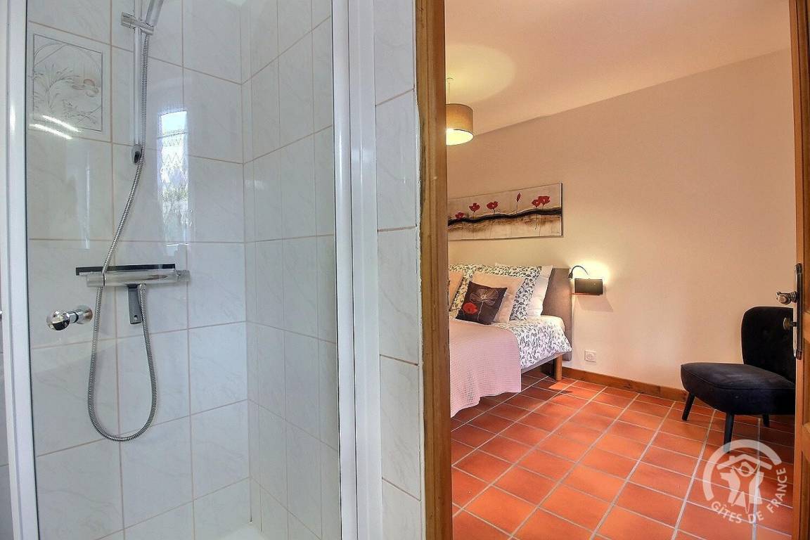 Ihre Ferienwohnung umfasst im Erdgeschoss: Wohnzimmer mit Küchenbereich und Loungebereich 31 m² (Kamin mit Holzofen), 1 Schlafzimmer (1 Doppelbett 160x200) mit eigenem Bad, WC, Waschküche. Etage: 2 Schlafzimmer (2 Einzelbetten, 1 Doppelbett), Badezimmer mit Dusche, WC. Privater Innenhof (40 m²), gemeinsames Grundstück von 500 m². Komplette Babyausstattung. Internetzugang per CPL.