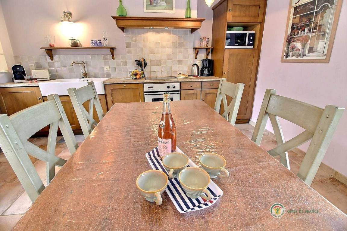 Dieses Ferienhausangebot enthält: Im Erdgeschoss: das Küchenbereich, einen Ess- Wohnraum, WC. 2 Schlafzimmer (1 Bett x 2 Person 160x190) (2 Betten x 1 Person 90x190), ein Badezimmer mit Dusche, WC. Babyausstattung vorhanden. Zu einer gemeinsamen Verfügung stehen auch: Innenhof von 750 m² und Garten von 500 m².