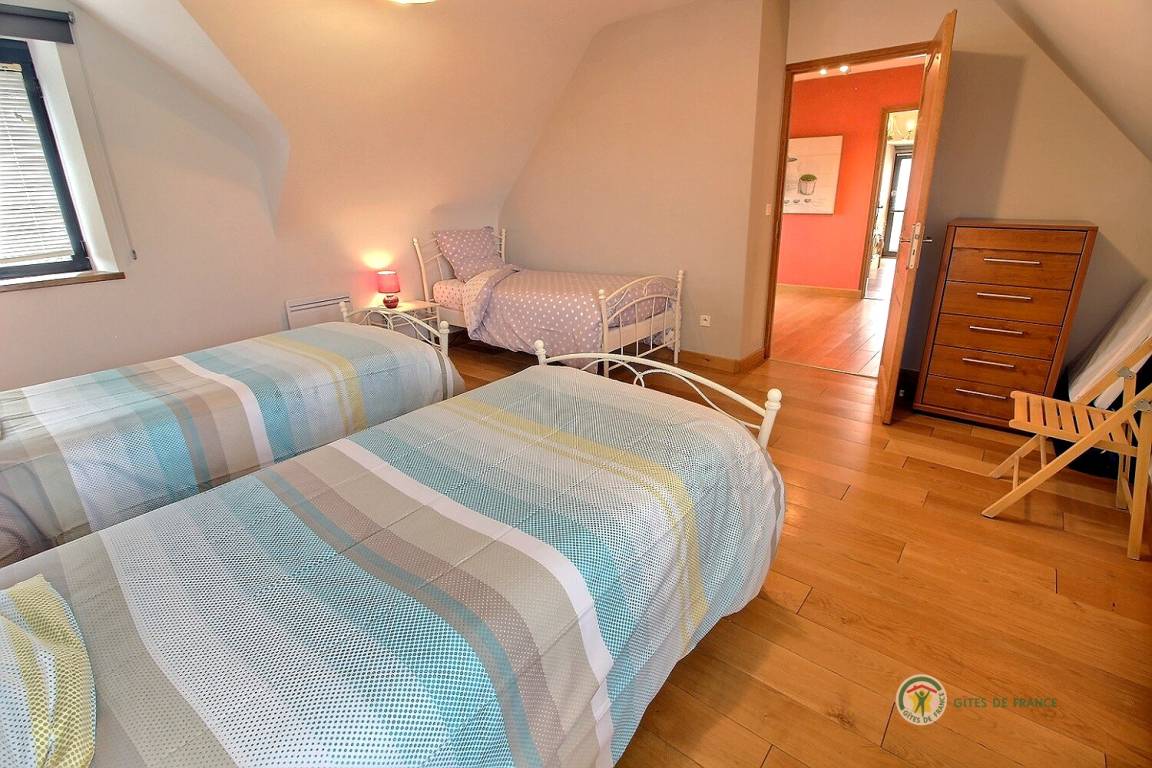 Dieses Ferienhausangebot enthält: Im Erdgeschoss: das Küchenbereich, einen Ess- Wohnraum, ein Badezimmer mit Dusche und WC. Im 1. Stock: 2 Schlafzimmer (3 Betten x 1 Person) (1 Bett x 2 Personen), WC. Zu einer gemeinsamen Verfügung stehen auch: Innenhof von 750 m² und Garten von 500 m².