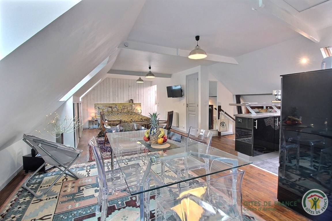 „Nous avons passé 10 jours merveilleux à Paimpol et dans les environs et avons apprécié le séjour « au-dessus de l'Atellier ». Il y a eu un très bon accueil et nous nous sommes sentis très à l'aise. L'équipement de l'appartement était très bon, l'emplacement dans la vieille ville de Paimpol génial. Hôtes très sympathiques, toujours ouverts pour un peu de discussion et des conseils. Si cela se présentait, nous reviendrions.“