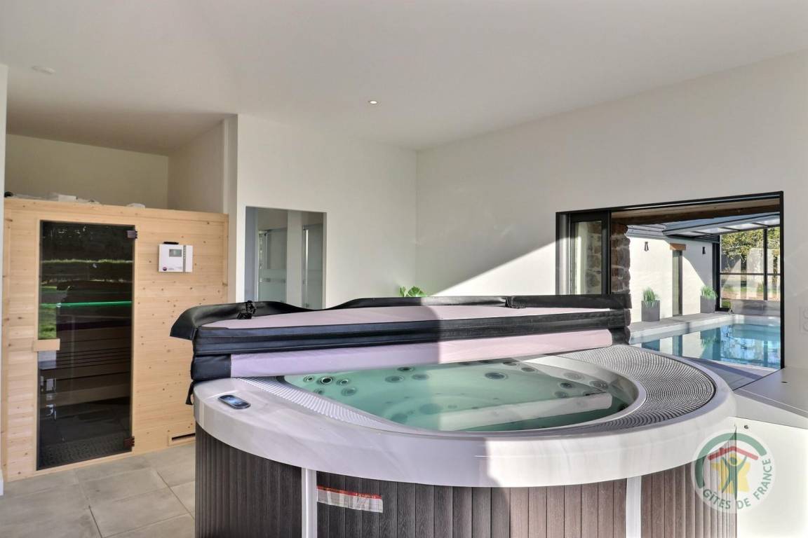 8 km von Paimpont entfernt lädt Sie dieses große, freistehende Bauernhaus mit 350 m² zu einem exotischen Aufenthalt im Herzen der Natur auf einem über 7.000 m² großen Grundstück ein. Dieses charaktervolle Haus in grüner Umgebung lädt zum Ausruhen und Entspannen ein und bietet einen schönen Wellnessbereich mit Spa und Sauna sowie einen herrlichen, beheizten, verglasten Pool, der das ganze Jahr über zugänglich ist. Dieses sehr komfortable Cottage ist modern und komplett ausgestattet und empfängt Sie in einer warmen Atmosphäre mit eleganter und gepflegter Dekoration. Die Südausrichtung garantiert schönes Licht in den Wohnräumen, die so eingerichtet sind, dass sie die Geselligkeit fördern. Sie werden diese privilegierte Umgebung mit den beiden mit Gartenmöbeln, Außenmöbeln, Liegestühlen und Gasgrill ausgestatteten Terrassen in vollen Zügen genießen und der Pétanque-Platz erwartet Sie für sportliche Herausforderungen!