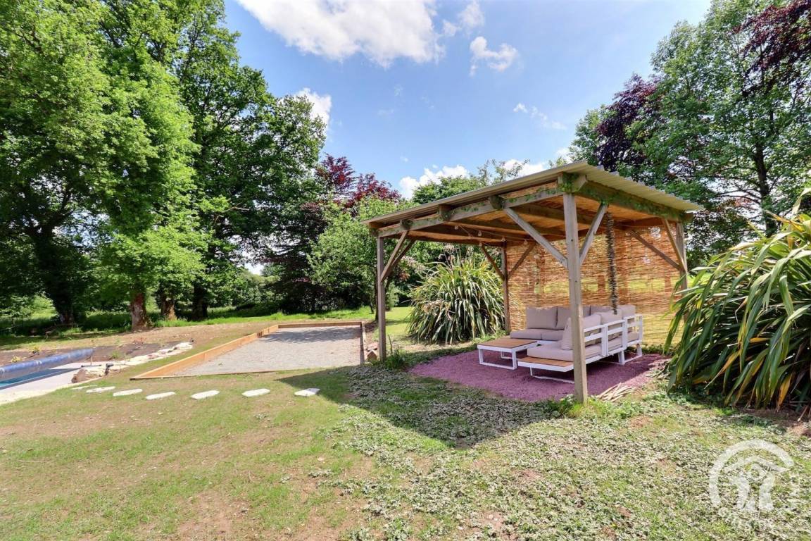 Der große, bewaldete Garten bietet Ihnen zahlreiche Bereiche, um die grüne Umgebung des Anwesens in vollen Zügen zu genießen: eine große Terrasse mit einem großen Tisch für Mahlzeiten im Freien, eine Pergola mit Gartenmöbeln, einen Pétanque-Platz und eine Tischtennisplatte.