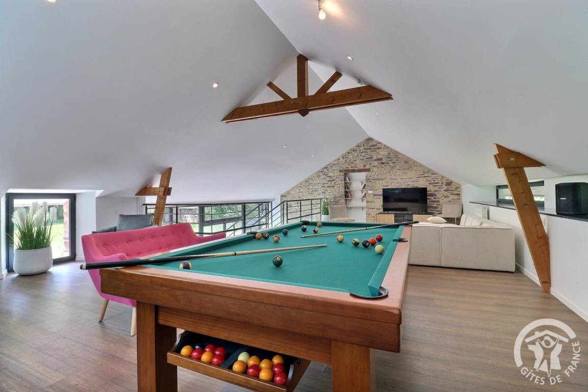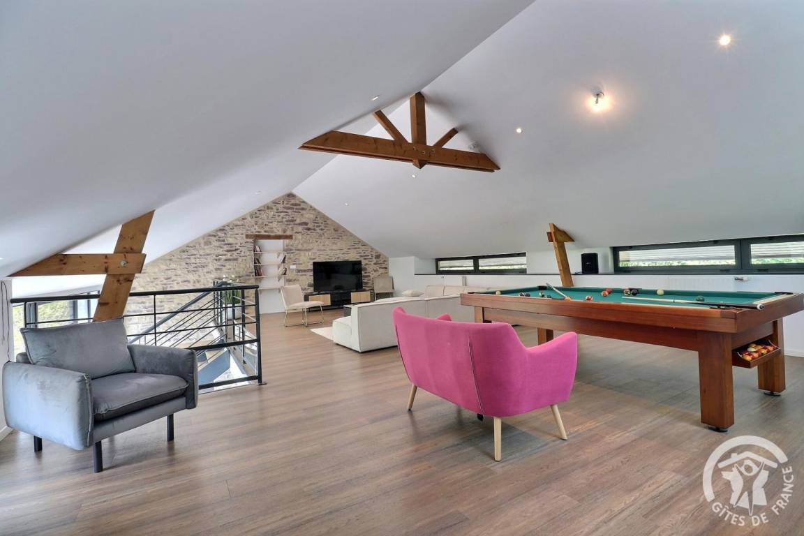 - ein Zwischengeschoss mit einer Lounge und einem Billardtisch