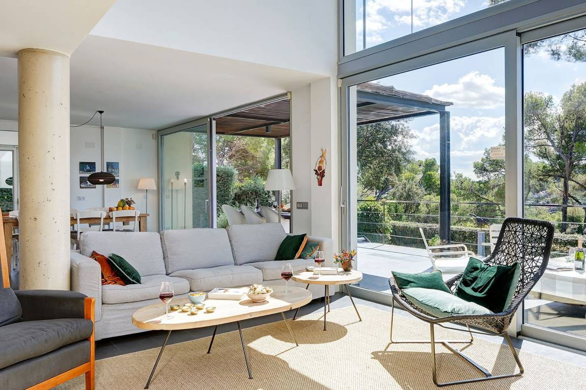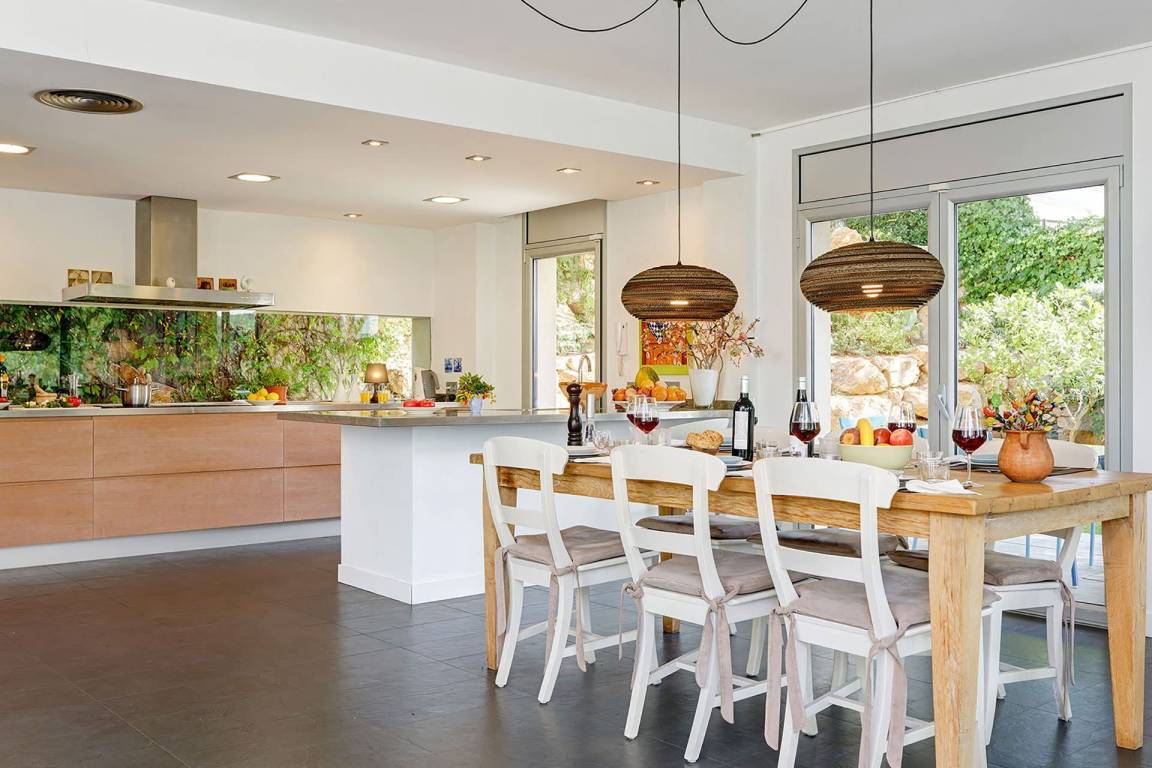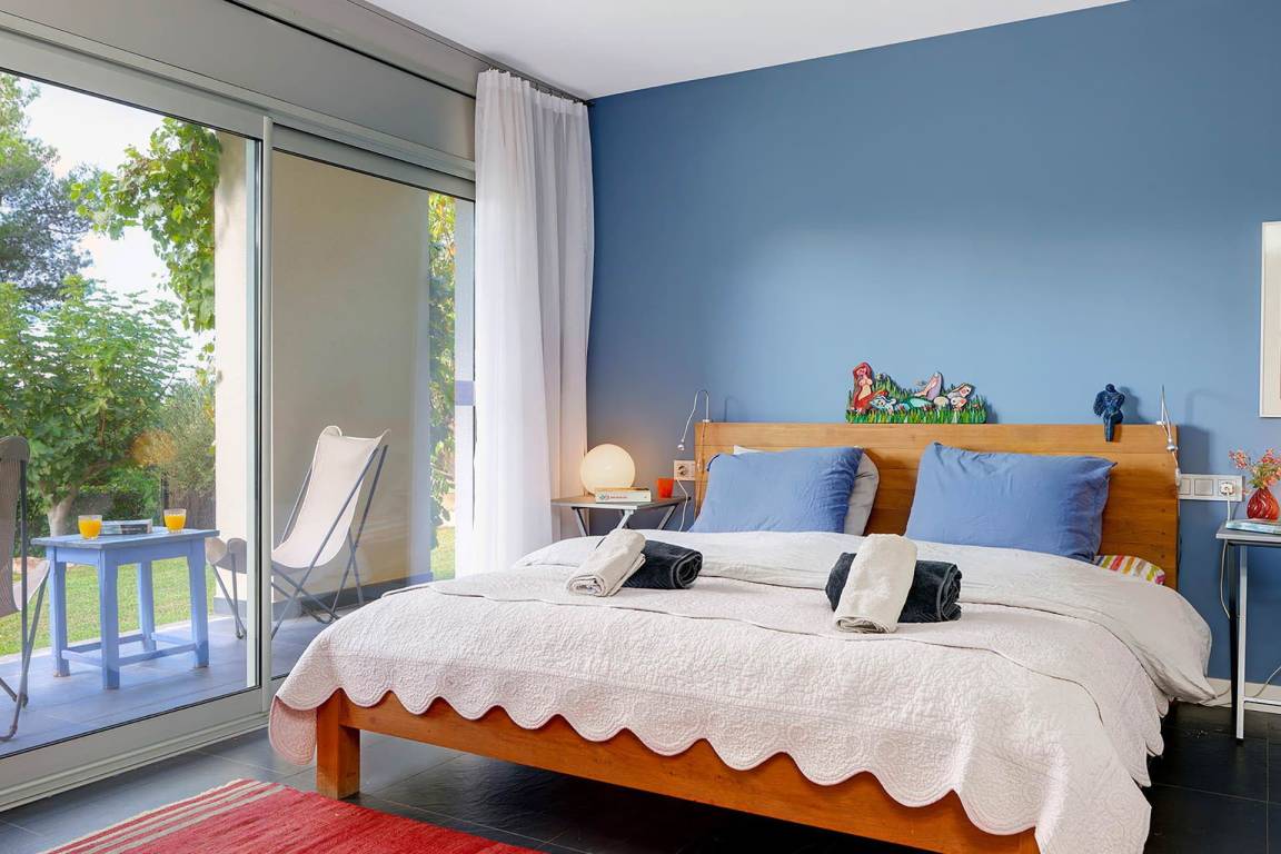Die Villa umfasst insgesamt vier Schlafzimmer und zwei Bäder und bietet Platz für bis zu acht Gäste. Die Räume sind zeitgenössisch gestaltet und folgen einem durchdachten Grundriss, der Privatsphäre und gemeinschaftliche Nutzung in Einklang bringt.
