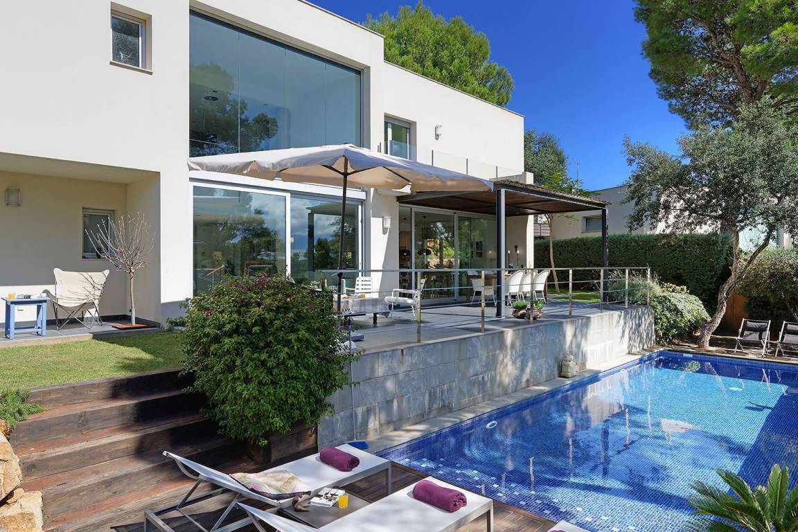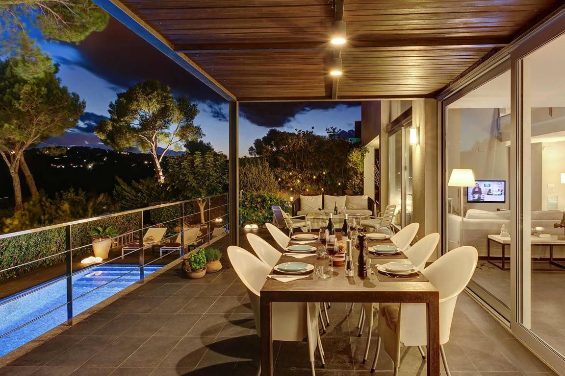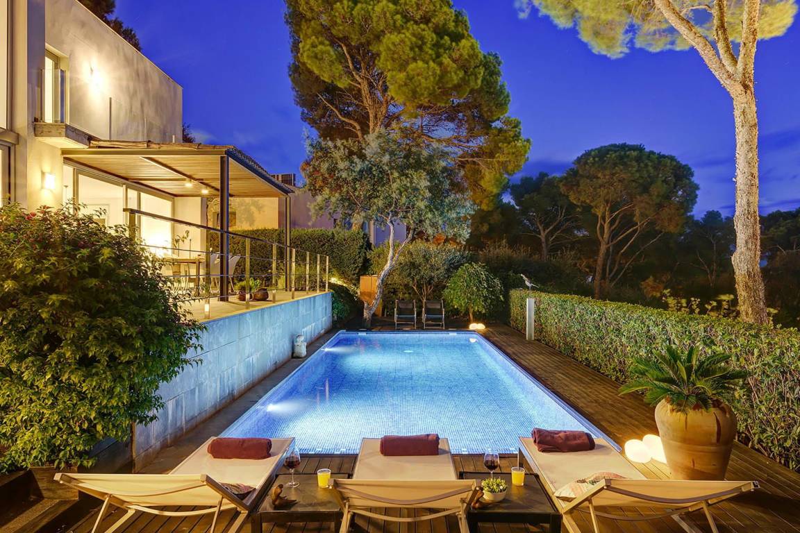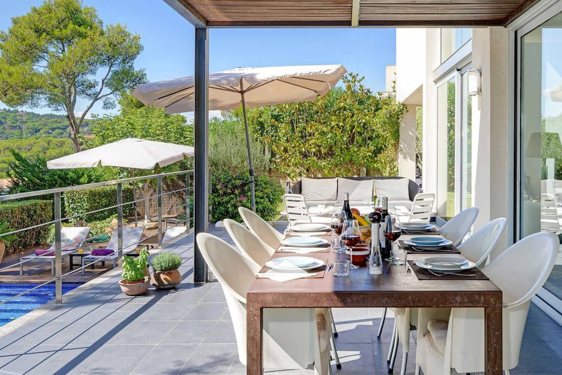 Die Villa umfasst insgesamt vier Schlafzimmer und zwei Bäder und bietet Platz für bis zu acht Gäste. Die Räume sind zeitgenössisch gestaltet und folgen einem durchdachten Grundriss, der Privatsphäre und gemeinschaftliche Nutzung in Einklang bringt.