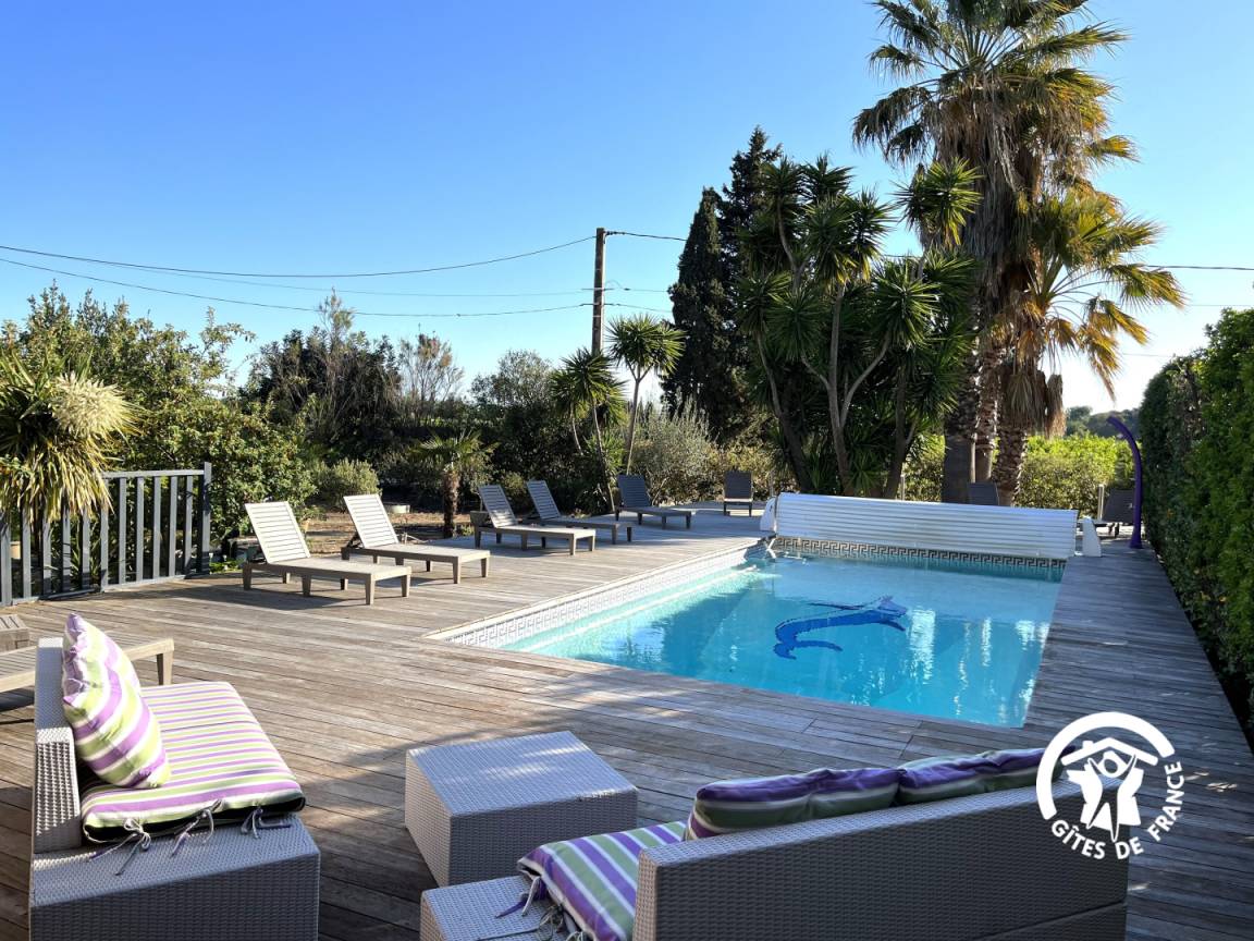 „Endroit très bien situé car à proximité de toutes les plages, villes et villages que nous voulions voir. (5 à 20 min max) L'endroit est calme et très reposant, et vous trouverez tout ce qu'il faut dans le village accessible à pied (10-15min max pour le centre du village). Boulangerie, proxy, deux cafés super sympa, boucherie, pharmacie, pizzeria excellente, … Intermarché à 5 min en voiture pour les grosses courses. Accueil de Marie et Christophe à l'image des habitants du sud, le sourire, les bons plan, la bonne humeur et adorable avec nos 3 petites filles de 3 et 5 ans, qui ne cessent de demander quand est-ce qu'on retourne chez Marie et Christophe ( On y reviendra c'est sûr qu'on leur répond !) Installations intérieurs et extérieurs au top, et piscine très agréable à l'abri du vent. Bref un séjour inoubliable !“