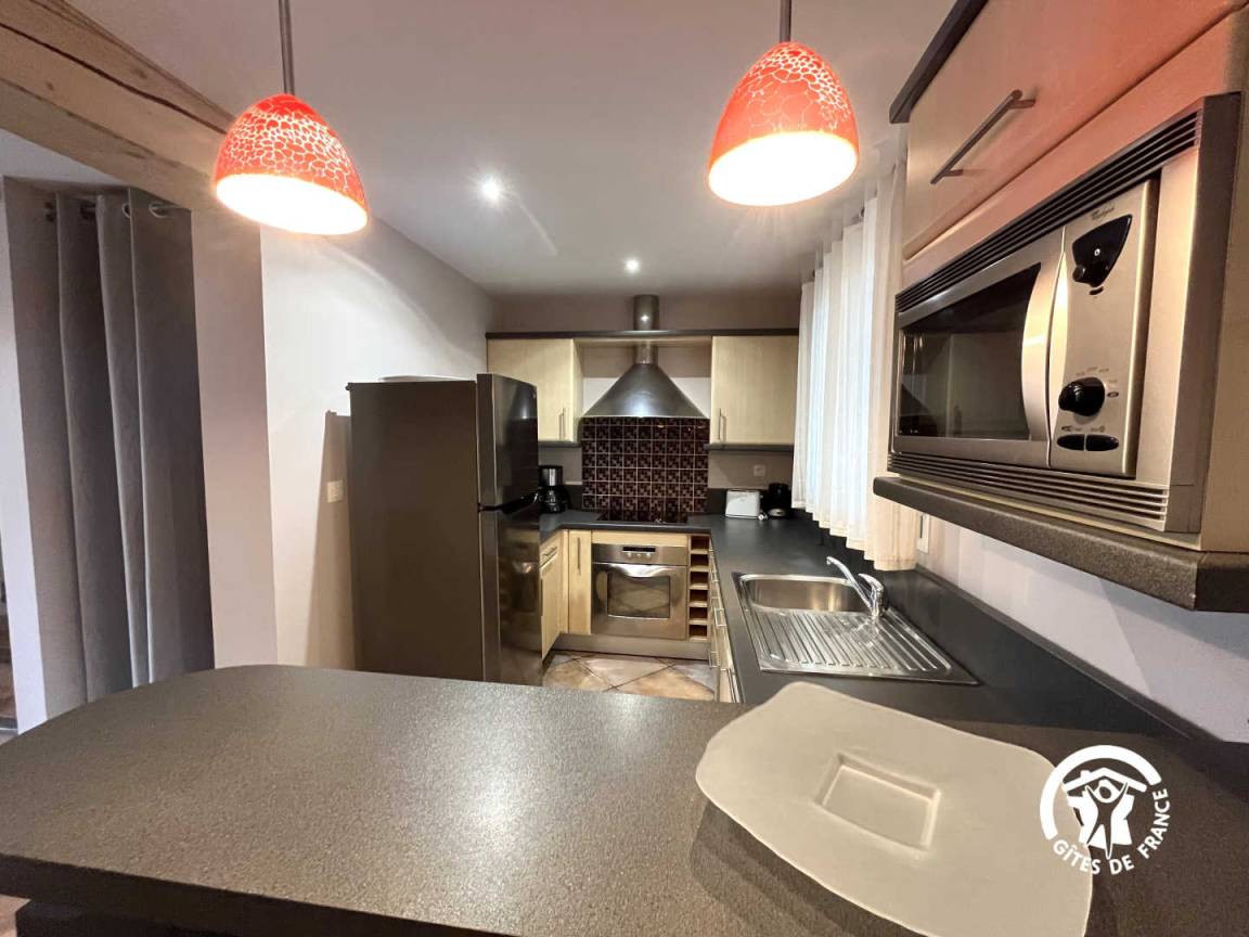 „Le gîte est très bien: Bien décoré, bien équipé, environnement très agréable, piscine chauffée/jacuzzi super. Nous avons passé un très bon weekend. Seul petit bémol: Les propriétaires qui habitent à côté sont un peu trop présents.“