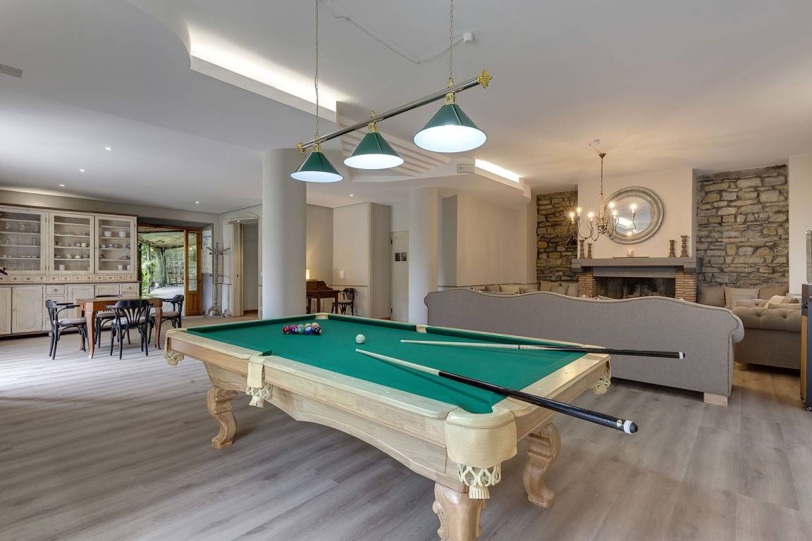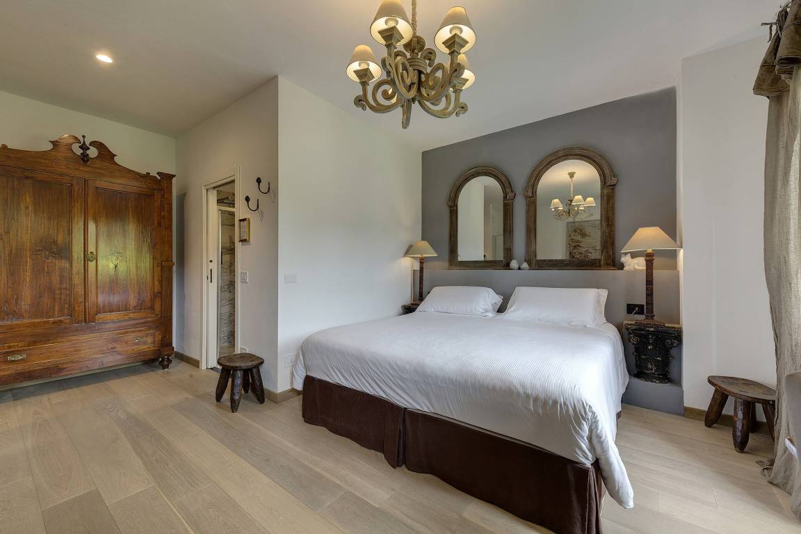 Die Villa umfasst insgesamt 7 Schlafzimmer und 9 Bäder und bietet Platz für bis zu 18 Gäste. Die Räume verteilen sich über mehrere Geschosse und sind so angeordnet, dass Privatsphäre und gemeinschaftliches Zusammenleben gleichermaßen möglich sind. Die Schlafzimmer sind elegant möbliert, und die 9 Bäder gewährleisten ausreichend Komfort für alle Gäste.