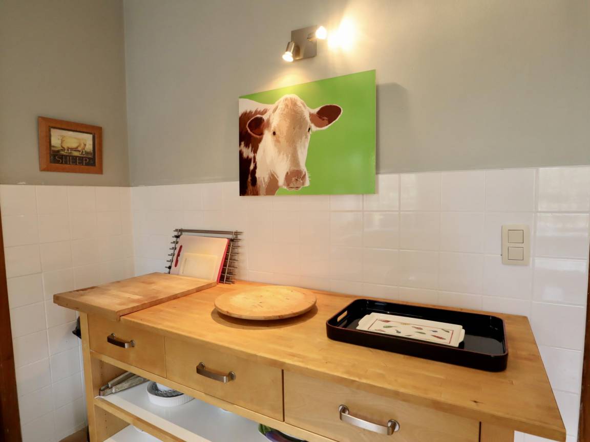 Layout : Parterre: Aufenthaltsraum mit TV, Ofen(Holz), DVD-Player , Esszimmer mit Esstisch , Küche mit Kochplatte(4 Kochplatten, Ceranfeld), Wasserkocher, Toaster, Kaffeemaschine(Filter), Backofen(elektrisch), Mikrowelle, Geschirrspüler, Kühlschrank, Kühlschrank, Tiefkühlschrank, Zitruspresse, Mixer , Toilette, Waschraum mit Wäschetrockner, Waschmaschine, Staubsauger, Bügelbrett, Bügeleisen
