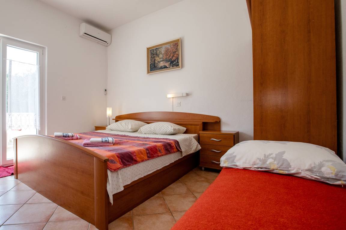 Klimatisierte gemütlich,ruhig,schön Fewo im Erdgeschoss mit 3 Terrassen,großer Garten,Spielplatz,Parkplätze,Grillterrasse nähe altstad Rab