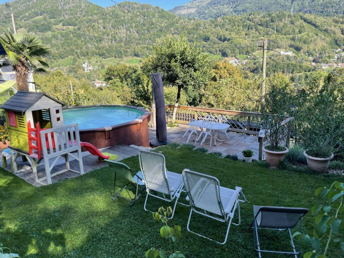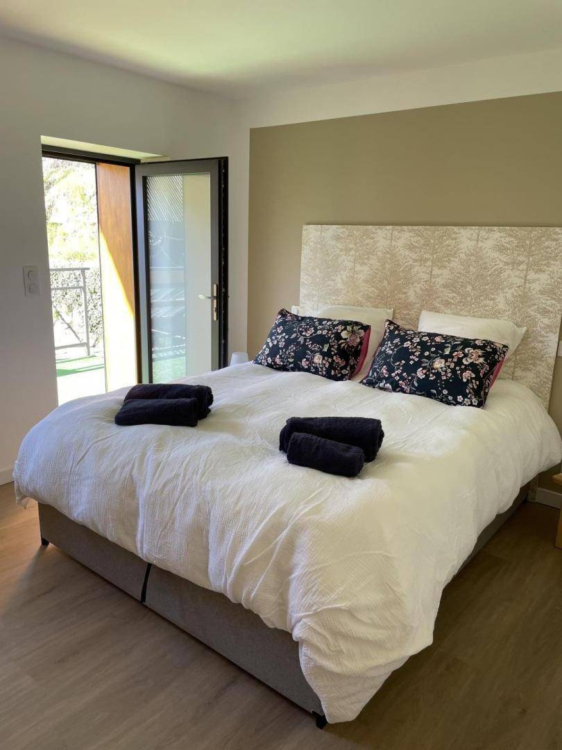 Im Erdgeschoss des Hauses der Eigentümer befindet sich diese ebenerdige Gîte mit großem Wohnzimmer und zwei Schlafzimmern (ein Bett 160 x 200 cm und zwei Betten 80 x 200 cm, die zu 160 x 200 cm zusammengeklappt werden können), einem Duschraum mit WC und einem separaten WC. Möblierte Balkonterrasse. 15 m² großer, oberirdischer Pool zur gemeinsamen Nutzung mit den Eigentümern (beheizt mit Solarmodulen auf ca. 25 °C), Außenbereich und Garten. Bettwäsche und Handtücher inklusive, Reinigung optional. Klimaanlage und WLAN.