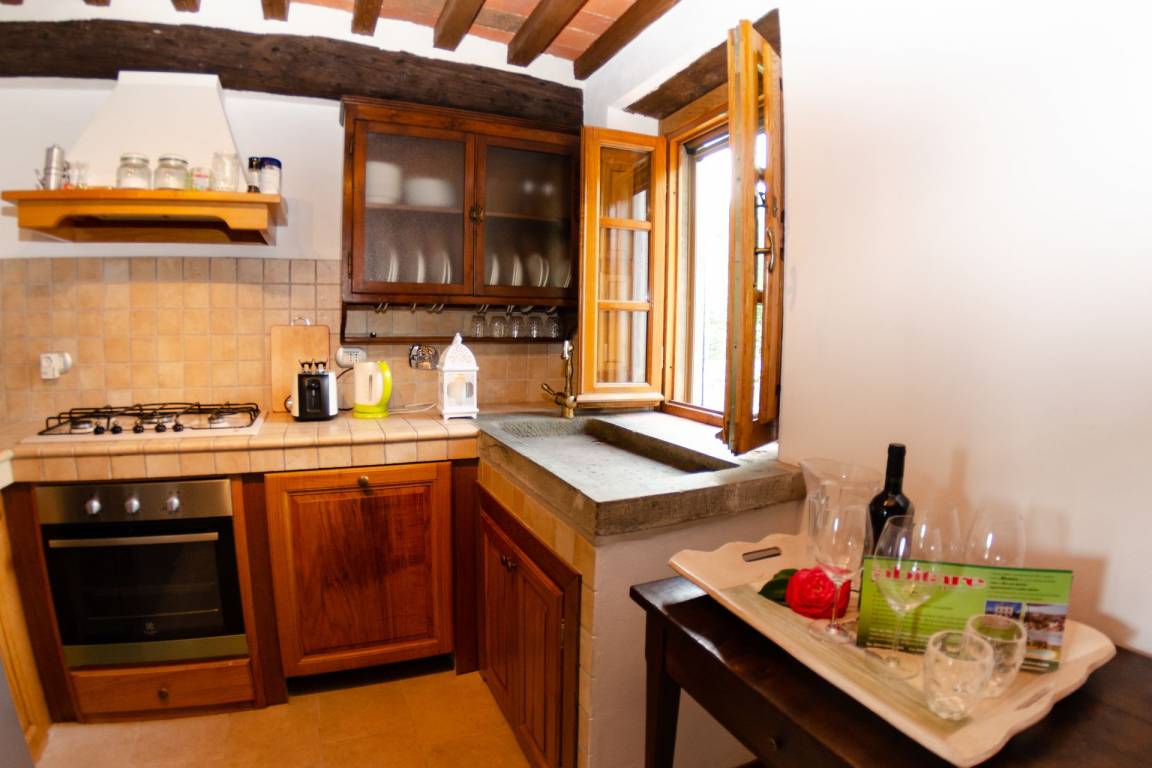 Speisen mit Freunden und Familie ist ein großer Bestandteil der toskanischen Kultur. Nutzen Sie die Küche, um Mahlzeiten aus lokalen Produkten vorzubereiten, während Sie im Urlaub sind. Die Küche kommt mit Kaffeemaschine, Mikrowelle, Toaster, Herd und Kühlschrank, sowie ausreichend Geschirr und Besteck für bis zu sieben Personen. Wenn Sie lieber 'al Fresco' speisen, dann können Sie das auf der komplett eingerichteten Terrasse tun, wo Sie gleichzeitig das schöne Wetter beim Essen genießen können.