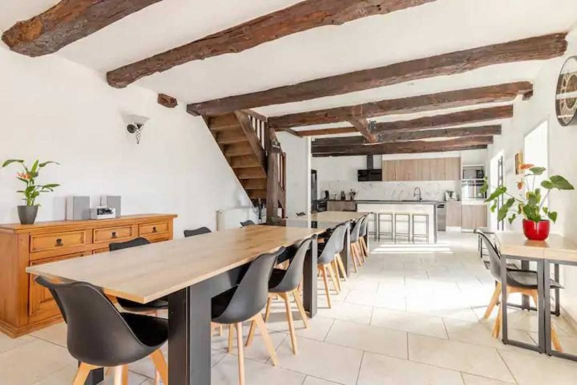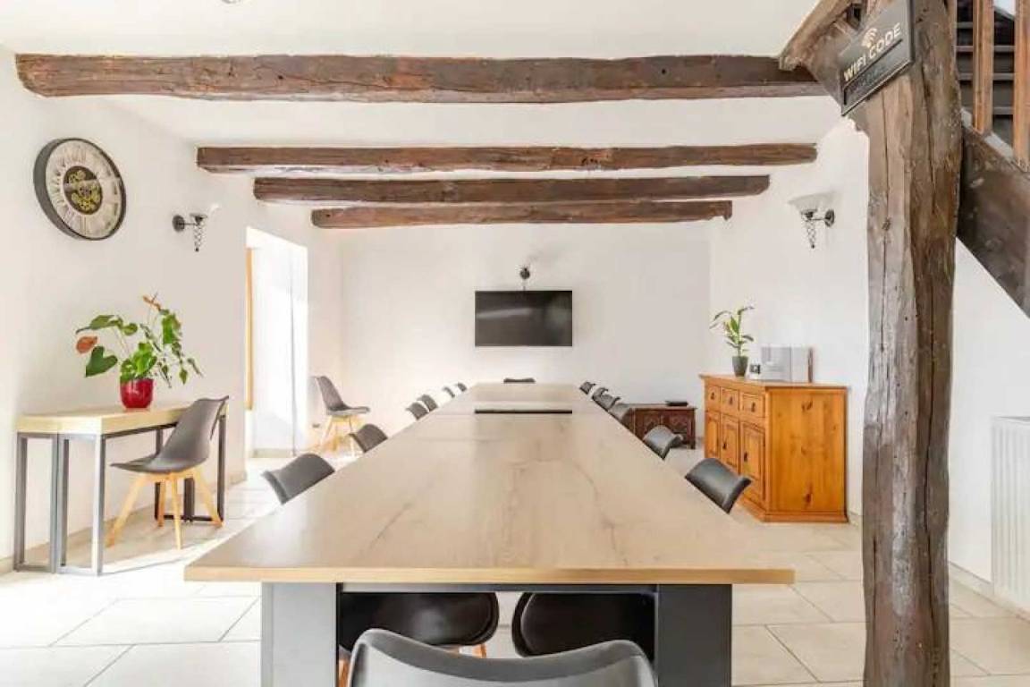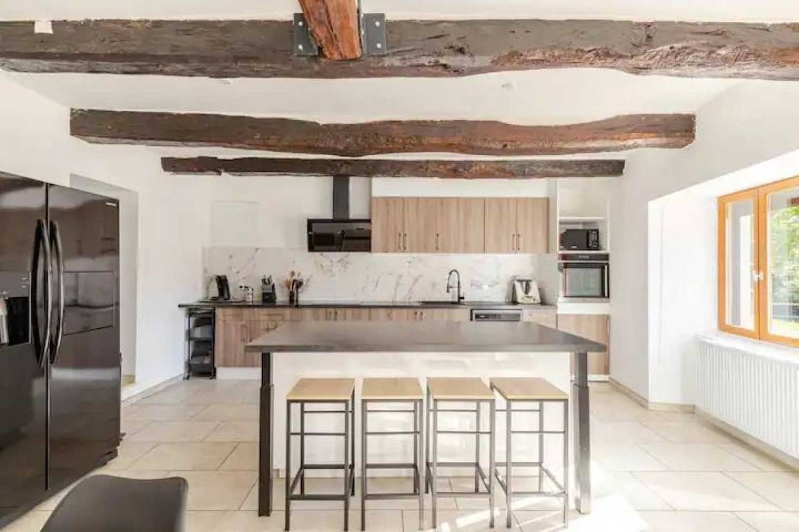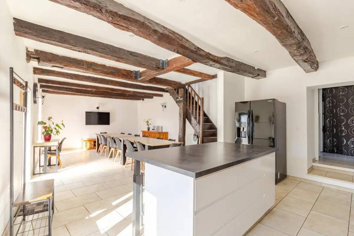 „Séjour très agréable, logement à la campagne avec toutes les commodités, "coin" cuisine bien adapté pour 14 personnes et bien pourvu en vaisselle et électro ménager, beaucoup d'espace à l'intérieur pour se regrouper ou s'isoler selon les besoins de chacun, des jeux, livres... à disposition, coin cheminée apprécié en hiver..très bonne literie... Nous sommes ravis de ce séjour !“