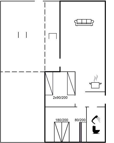 SchlafverhältnisseDie Schlafplätze verteilen sich auf 2 Schlafräume. 2 Schlafplätze in einem Doppelbett. 2 Schlafplätze in Einzelbetten. 2 Schlafplätze in einem Etagenbett.