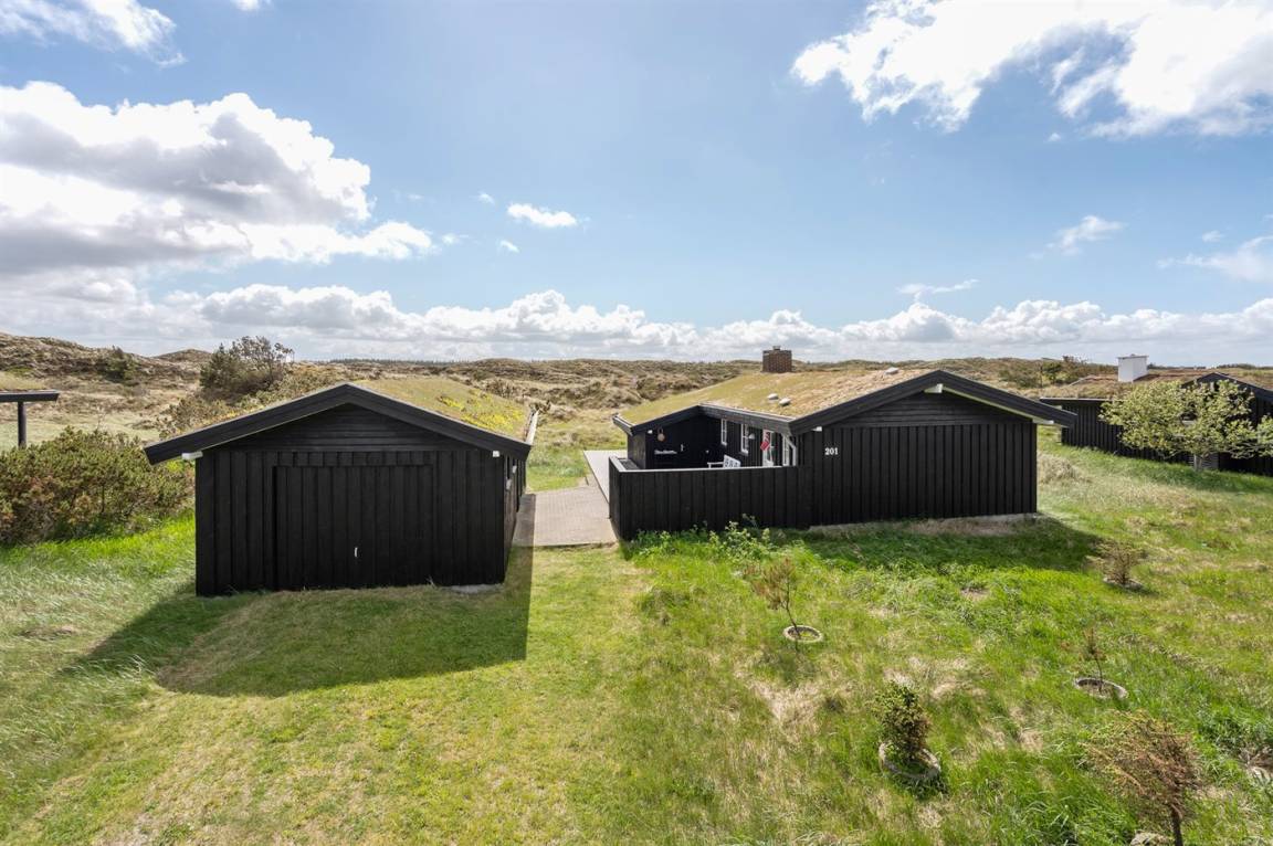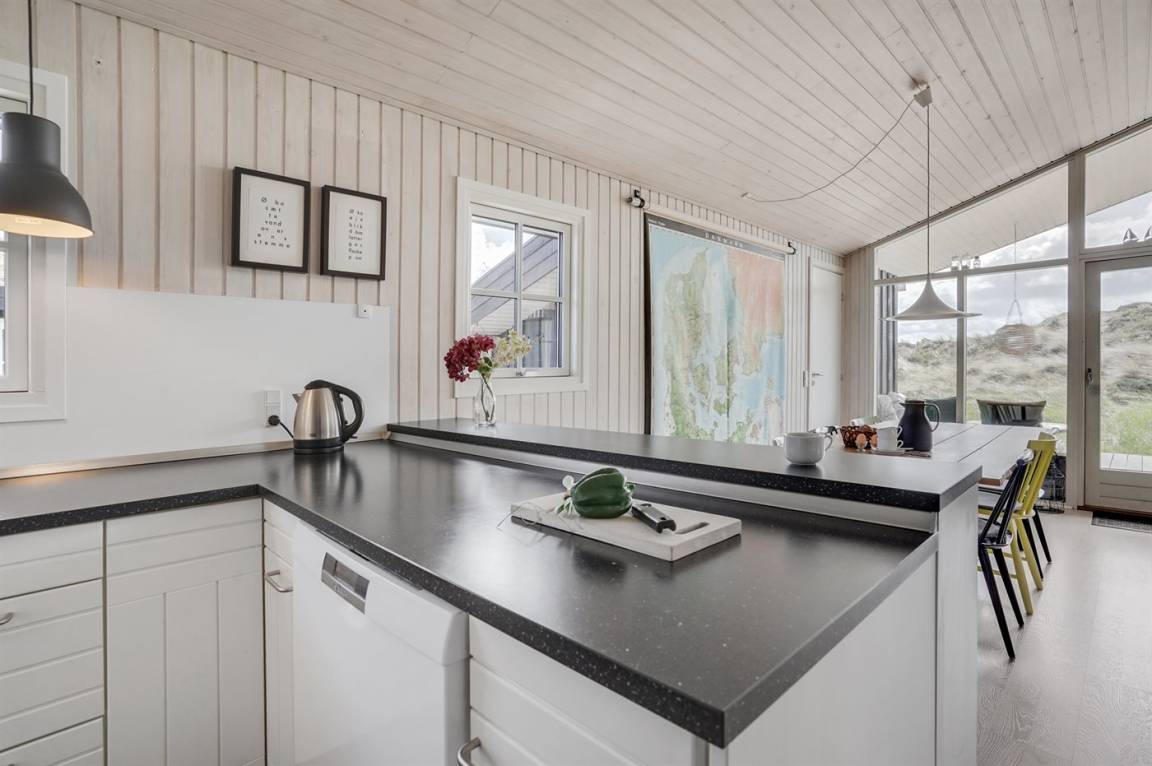 DraußenDie Ferienunterkunft liegt auf einem 1750 m² großen Dünengrundstück. Die Entfernung zum Meer beträgt 500 m. Die nächste Einkaufsmöglichkeit liegt 2000 m entfernt. Es steht ein 70 m² Terrassenareal zur Verfügung. Außerdem gibt es 12 m² überdachte Terrasse. Geräteraum.Es steht eine Garage zur Verfügung. Parkplatz auf dem Grundstück.