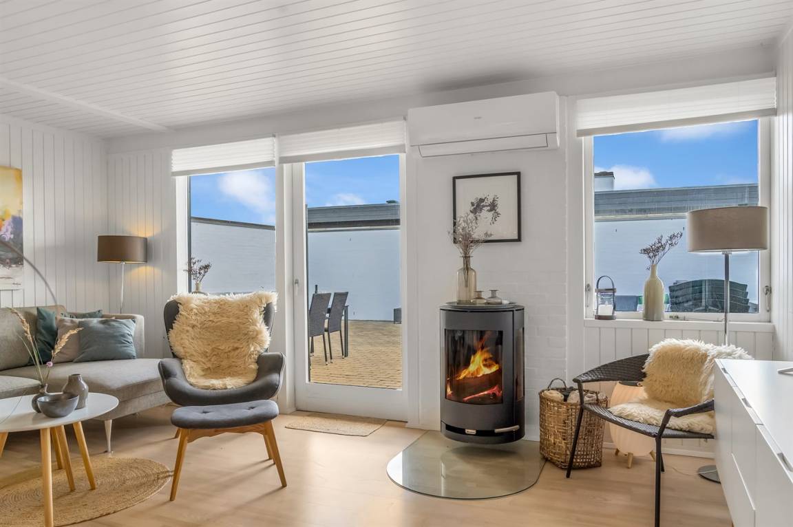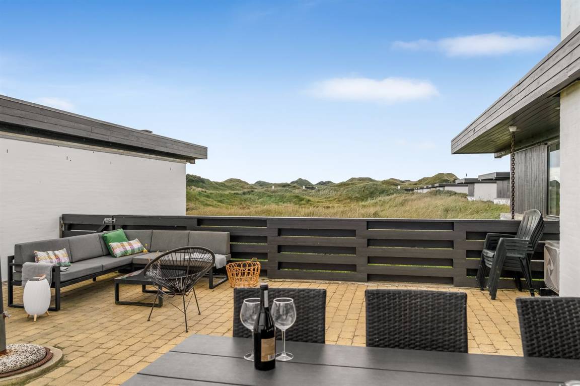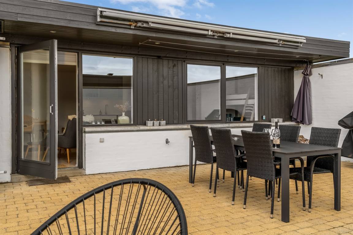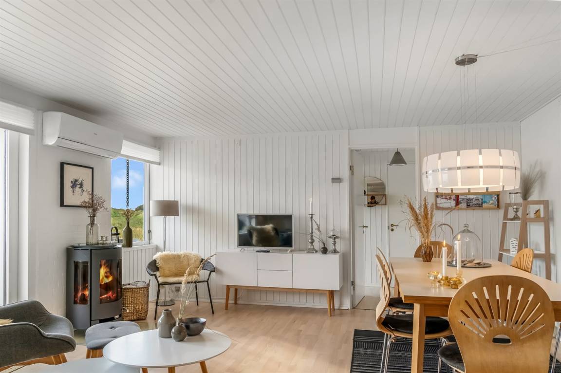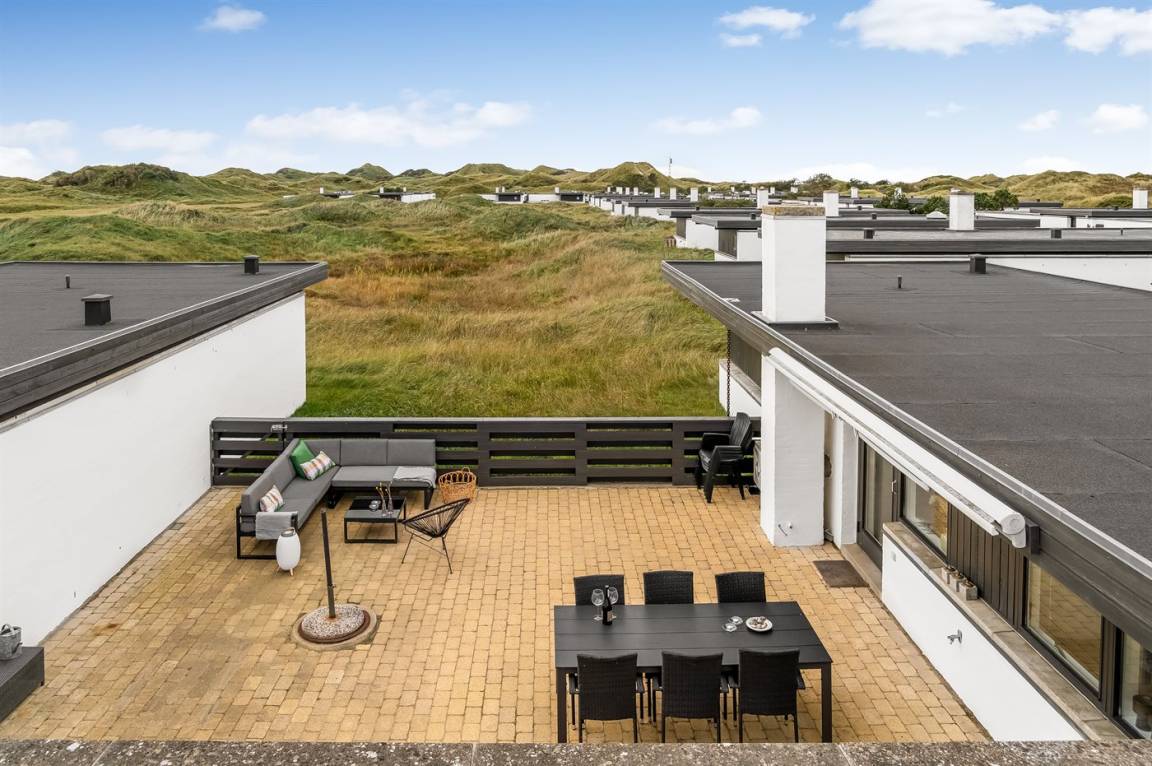 Träumst du von einem Urlaub in der Nähe der Nordsee, wo du Ruhe, Erholung und wunderschöne Natur genießen kannst? Dann ist diese Ferienwohnung im Rødhus Klit Feriencenter die perfekte Wahl. Die Wohnung wurde geschmackvoll modernisiert und mit Fokus auf Komfort und Gemütlichkeit eingerichtet, sodass du dich sofort wie zu Hause fühlst. Hier erwartet dich ein heller, einladender Wohnbereich mit direktem Zugang zu einem schönen Innenhof/Terrasse, von wo aus du den fantastischen Blick über die eindrucksvollen Dünen genießen kannst. Perfekt für entspannte Tage in der Sonne, gemütliche Grillabende oder ruhige Stunden unter freiem Himmel.