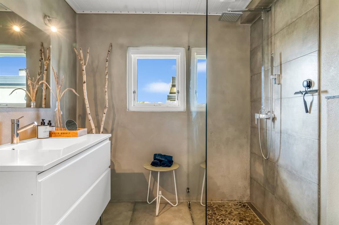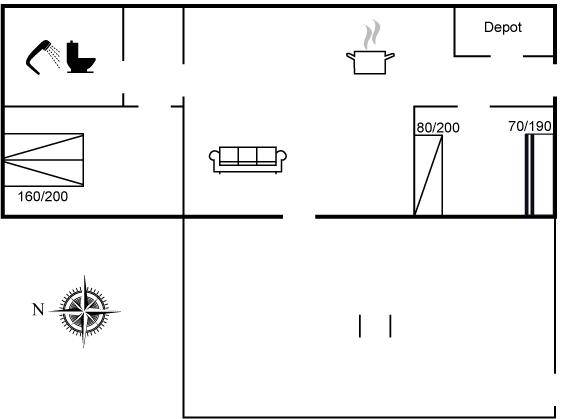 DraußenDie Ferienunterkunft liegt auf einem 73 m² großen Naturgrundstück. Die Entfernung zum Meer beträgt 400 m. Die nächste Einkaufsmöglichkeit liegt 7000 m entfernt. Es steht ein offenes Terrassenareal zur Verfügung. Parkplatz auf dem Grundstück.