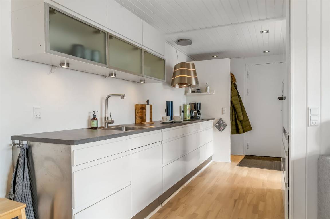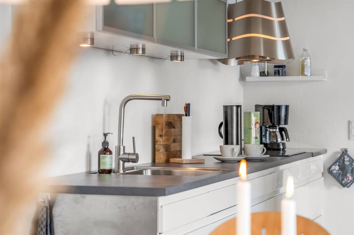 KücheDie Küche ist mit Kühlschrank ausgestattet. Außerdem gibt es 4 Induktions-Kochzonen, Umluftofen sowie Geschirrspüler.
