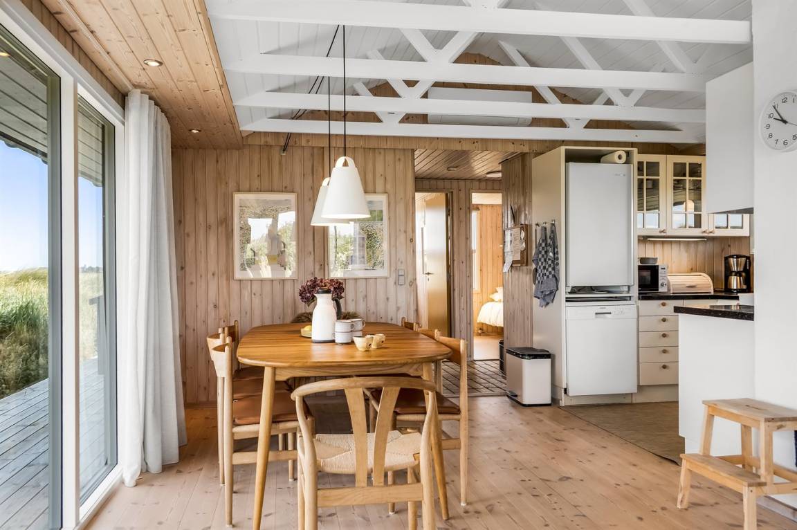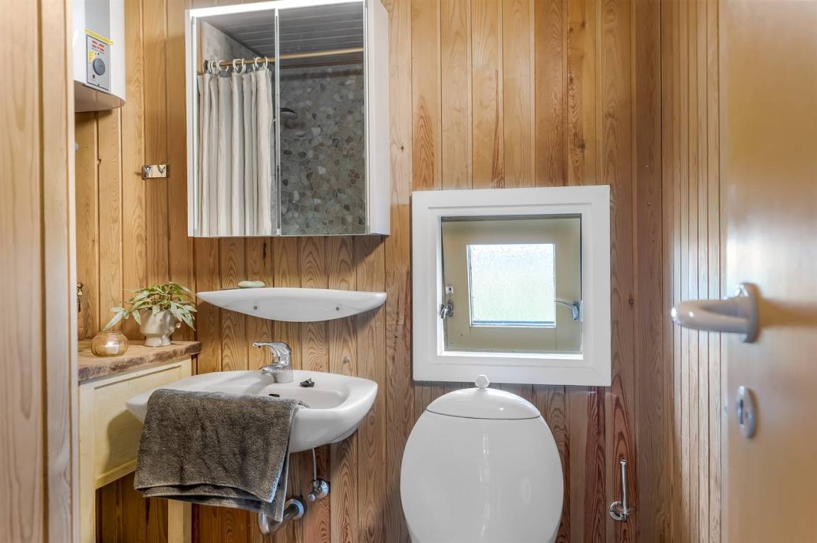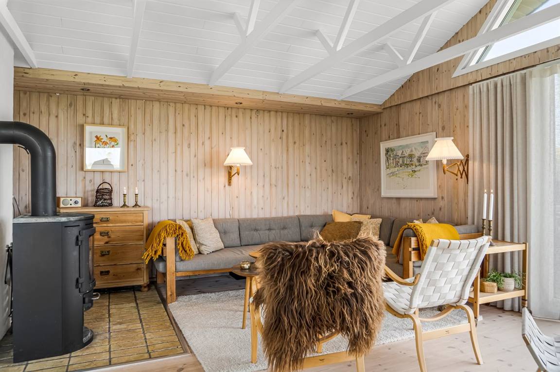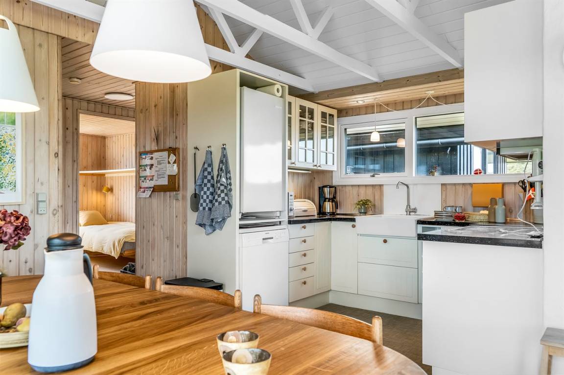 „The vacation at the holiday home: Das Haus war nicht gut gereinigt. Verschmierte Fenster (Fingerabdrücke), viel Staub und Fett auf den Flächen, vertrocknete Insekten in den Ecken der Räume. Spinnenweben in den Türahmen. Div. Lampen funktionierten nicht. Es gab keine Ersatzglühlampen. Das Haus war völlig ausgekühlt und es gab keine Bedienungsanleitung für die Wärmepumpe. Für die sachgemäße Nutzung des Ofens fehlt ein Behälter für die Asche (Blecheimer). Wir haben uns mit einer Auflaufform beholfen, da wir bei den Temperaturen fast durchgehend mit dem Ofen heizen mussten und die Asche nie bis zum nächsten Morgen völlig auskühlen konnte. Die Küchenausstattung ist z. T. sehr alt und abgenutzt (insbesondere Pfannen und Kochlöffel, Pfannenwender, verschimmelte Holzbretter.) Der Duschvorhang ist verschimmelt. Die Gardinen hängen herunter, die Gardinenschienensind nicht mehr gängig. Die Kissen auf dem Sofa sind dreckig. Der Fernseher hat nur minimale Programme obwohl es eine Satelitenschüssel gibt. Eine Einstellung der Programme ist nicht möglich, da in der (veralteten) Begrüßungsmappe mit einer Strafe von 550 DKK gedroht wird, wenn man etwas verstellt.“