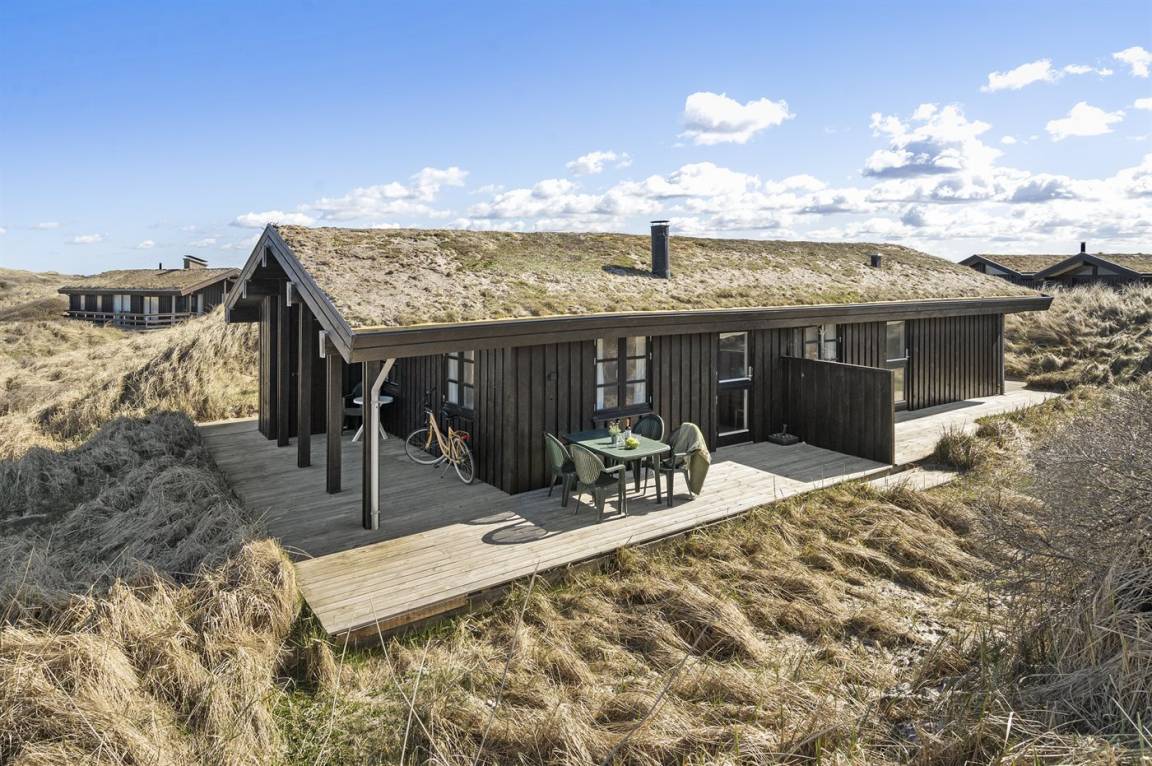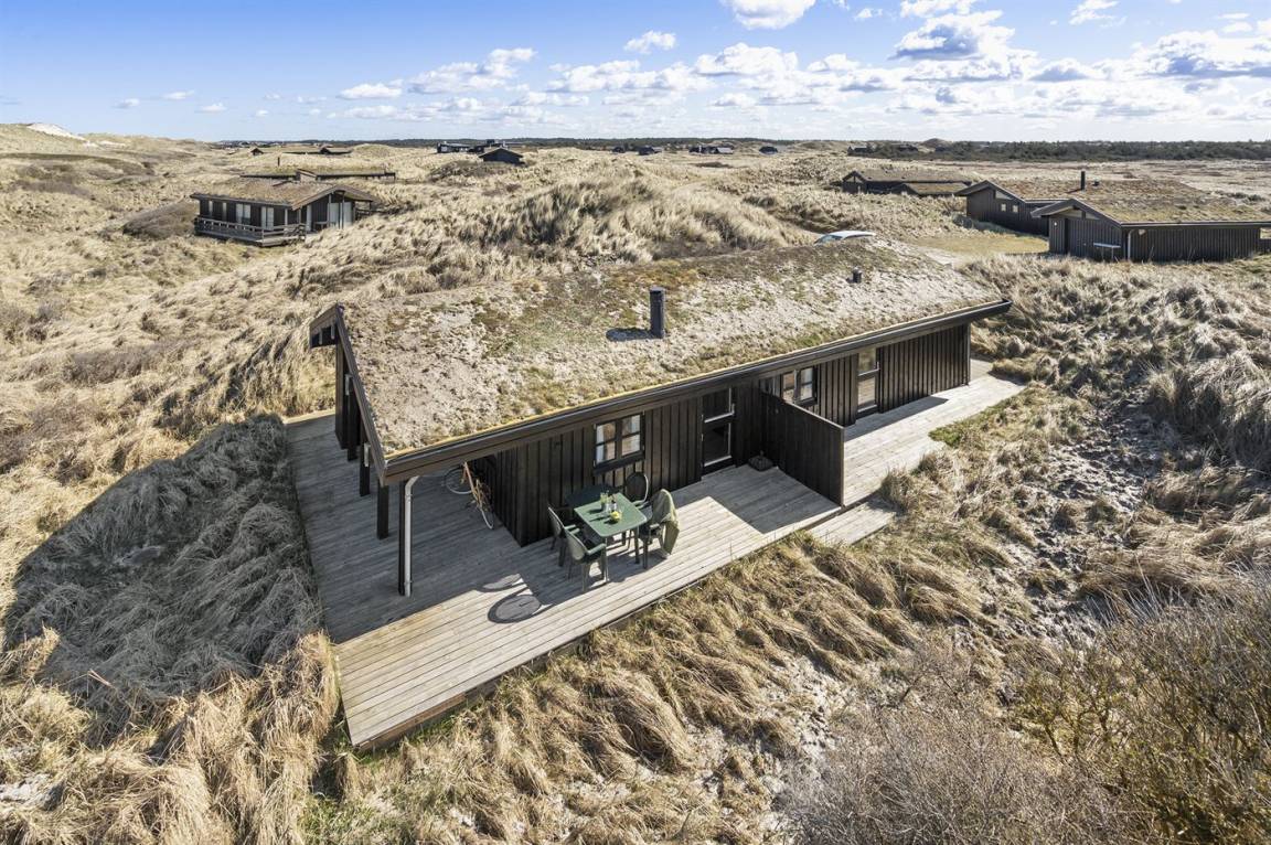 DraußenDie Ferienunterkunft liegt auf einem 3500 m² großen Dünengrundstück. Die Entfernung zum Meer beträgt 100 m. Die nächste Einkaufsmöglichkeit liegt 7500 m entfernt. Es steht ein 36 m² Terrassenareal zur Verfügung. Außerdem gibt es 11 m² überdachte Terrasse. Parkplatz auf dem Grundstück.