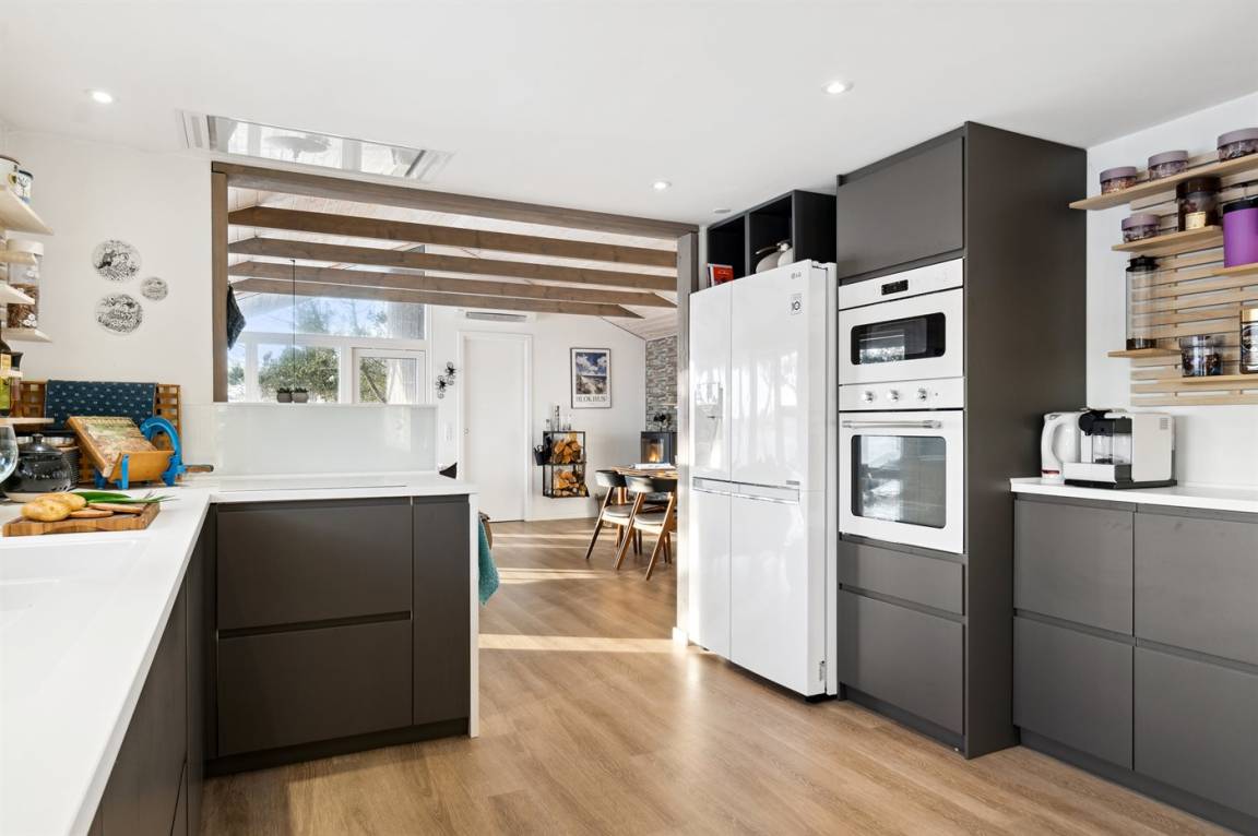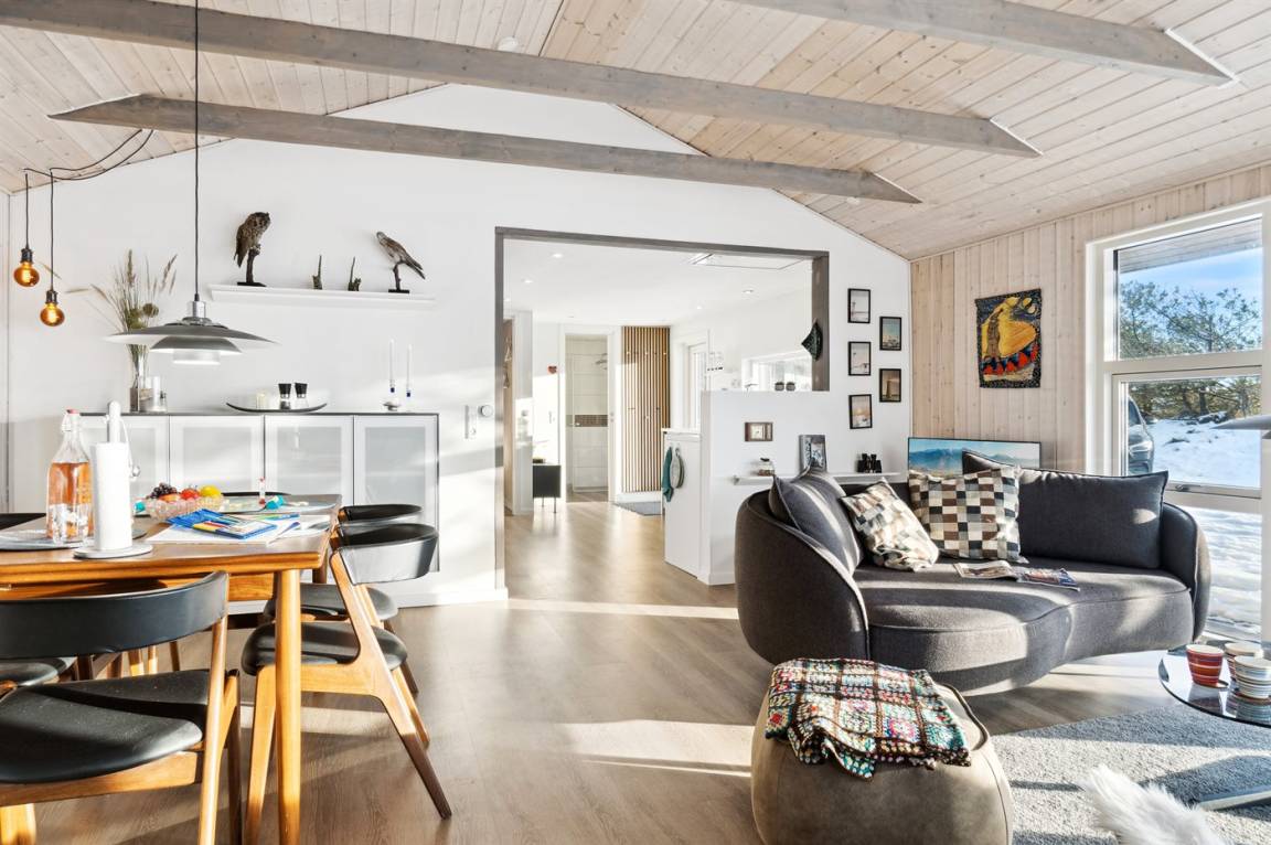 Ein schönes, neu gebautes Ferienhaus auf einem ungestörten Grundstück im herrlichen Rødhus gelegen. Das Haus eignet sich besonders gut für zwei Paare und liegt nur 500 Meter vom beliebten Sandstrand von Rødhus entfernt.