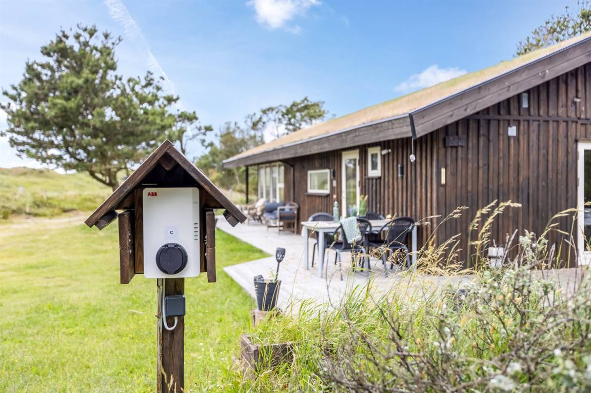 DraußenDie Ferienunterkunft liegt auf einem 1865 m² großen Naturgrundstück. Die Entfernung zum Meer beträgt 500 m. Die nächste Einkaufsmöglichkeit liegt 6000 m entfernt. In einem Abstand von 6000 m gibt es einen Golfplatz. Es steht ein 50 m² Terrassenareal zur Verfügung. Außerdem gibt es 20 m² überdachte Terrasse. Es steht ein Grill zur Verfügung. Es ist ein Ladestecker für Elektroautos installiert. Mit einer Ladeleistung von 11 kW. Parkplatz auf dem Grundstück.