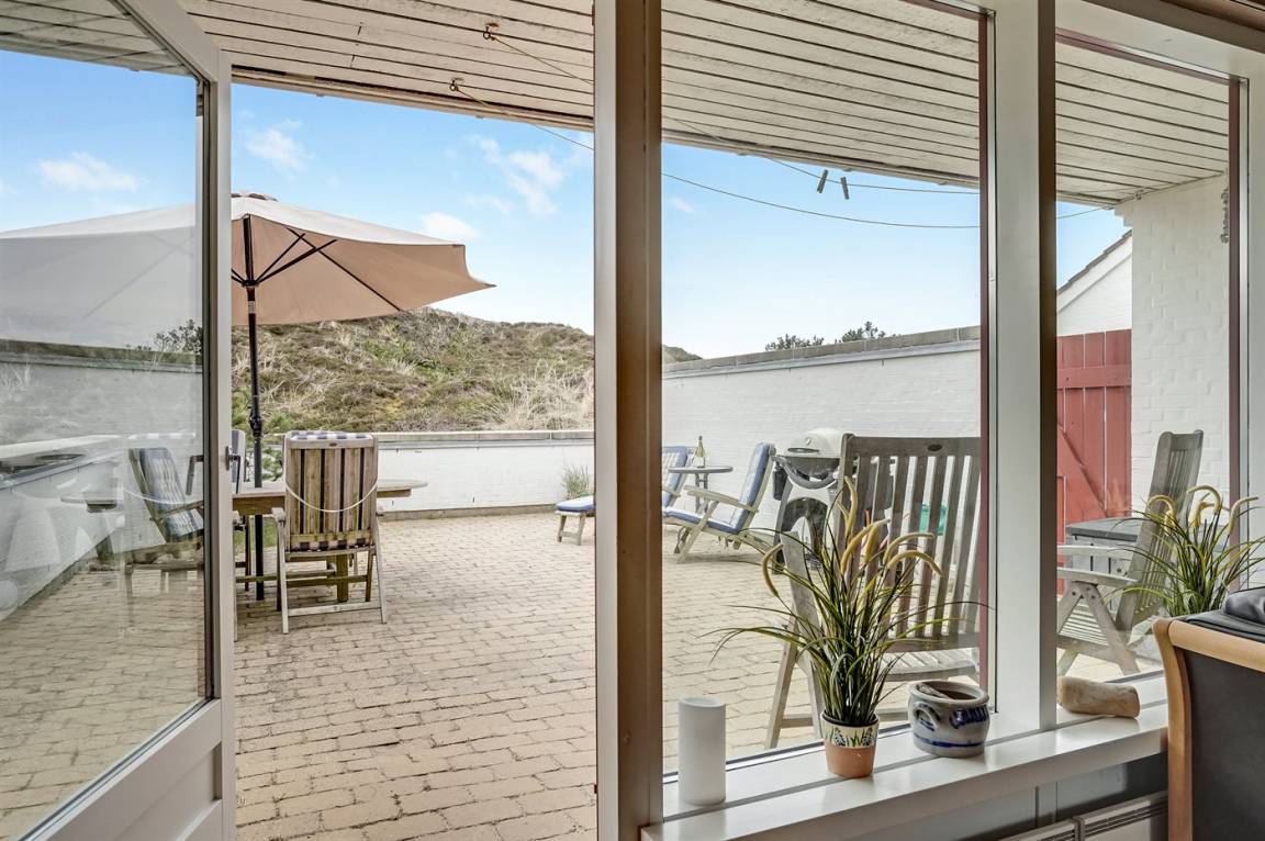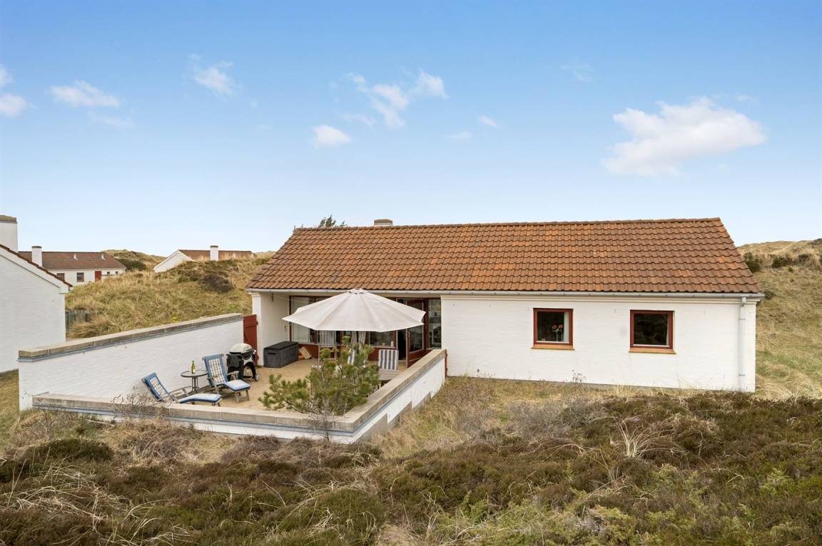 DraußenDie Ferienunterkunft liegt auf einem 130 m² großen Dünengrundstück.Naturgrundstück. Das Grundstück ist eingezäunt. Die Entfernung zum Meer beträgt 400 m. Die nächste Einkaufsmöglichkeit liegt 7000 m entfernt. Es steht ein 45 m² Terrassenareal zur Verfügung. Davon insgesamt 45 m² geschlossene Terrasse. Parkplatz auf dem Grundstück.