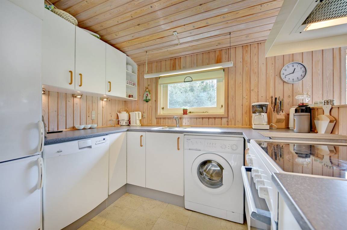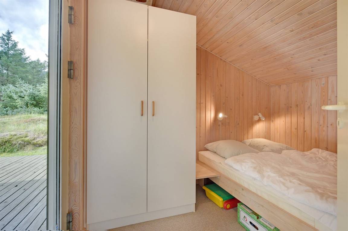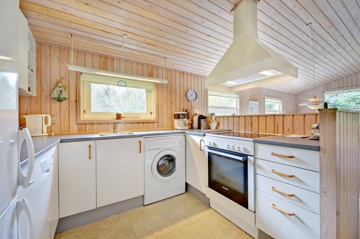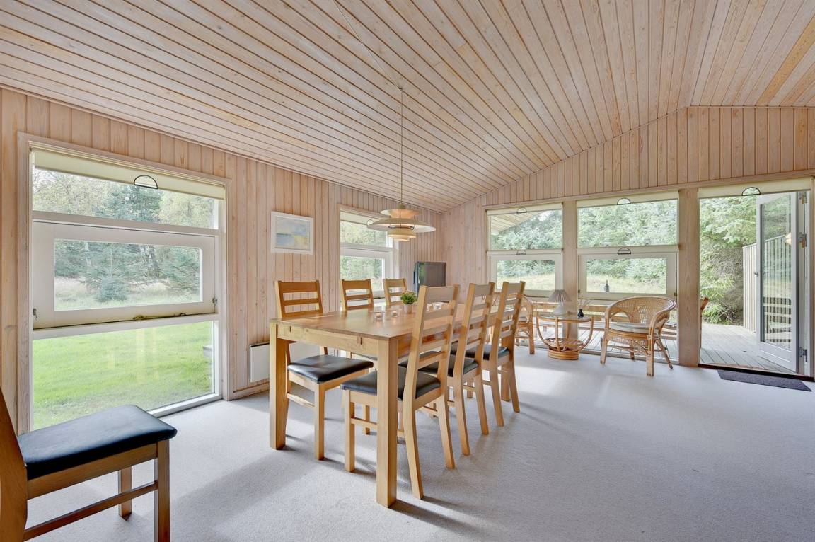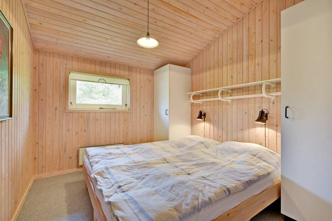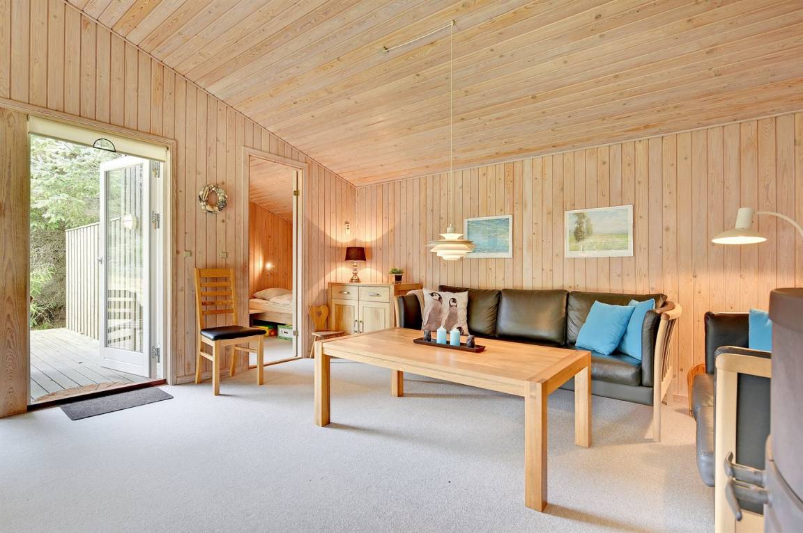 Herrliches Ferienhaus aus Holz, 1986 gebaut, mit Sauna. Besonders ruhige, herrliche Lage auf einem sehr großen Naturgrundstück, zu allen Seiten von hohen Bäumen umgeben. Zum Haus gehören schöne, offene und überdachte Terrassen mit Gartenmöbeln. Für die Kinder Sandkiste und Schaukel auf dem Grundstück. Teils Teppichböden, teils Linoleumböden. Die Wände und Decken sind aus rustikalem Kiefernholz. Die neue Küche (2009) enthält u. a. Geschirrspüler, Mikrowelle, Tiefkühlgerät und Waschmaschine. Kaminofen, Stereoanlage mit CD-Spieler sowie TV mit digitalem Satellitenanschluss, DVD-Spieler und Video im Wohnzimmer. Duschnische und beheizter Klinkerboden im Badezimmer. Von hier direkter Zutritt zur Sauna. Kinderbett vorhanden. Ein prachtvolles, gut eingerichtetes Ferienhaus. Attraktive Lage für Urlauber die einen Urlaub in schöner Natur verbringen möchten.