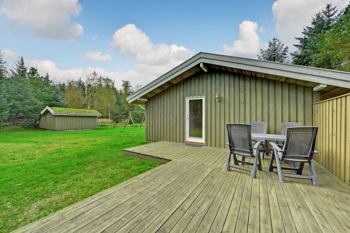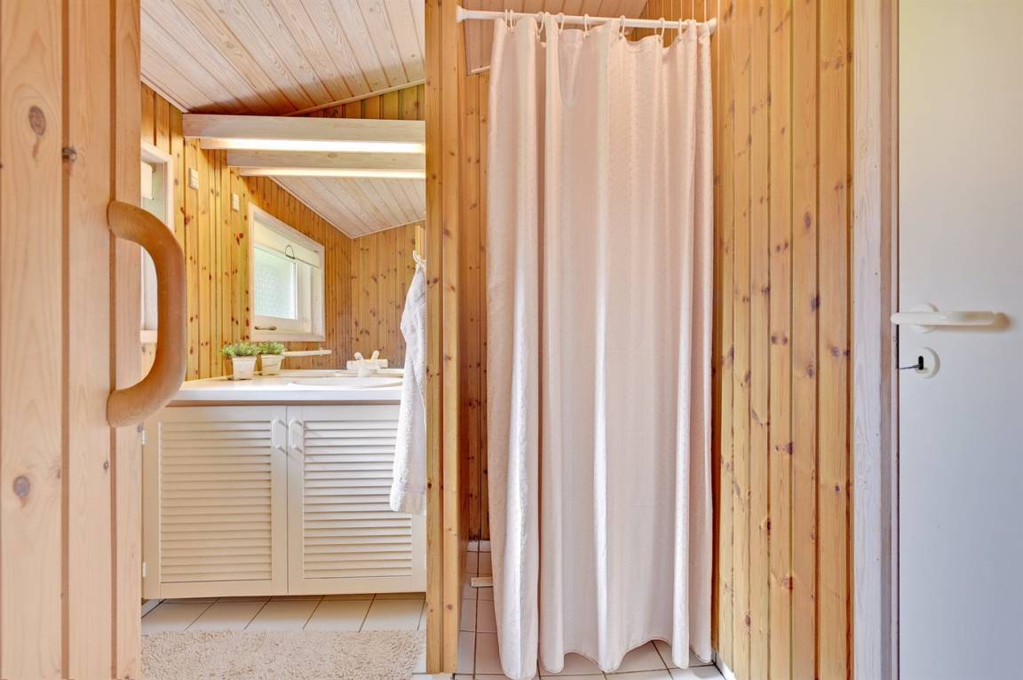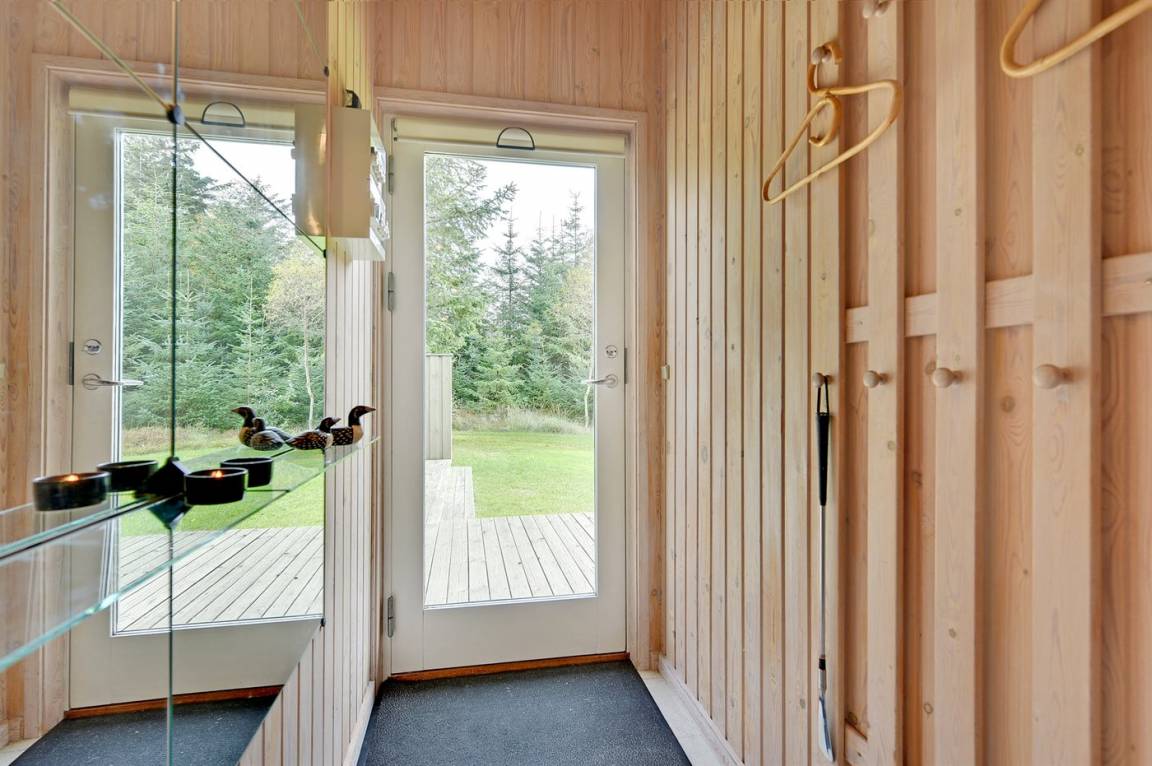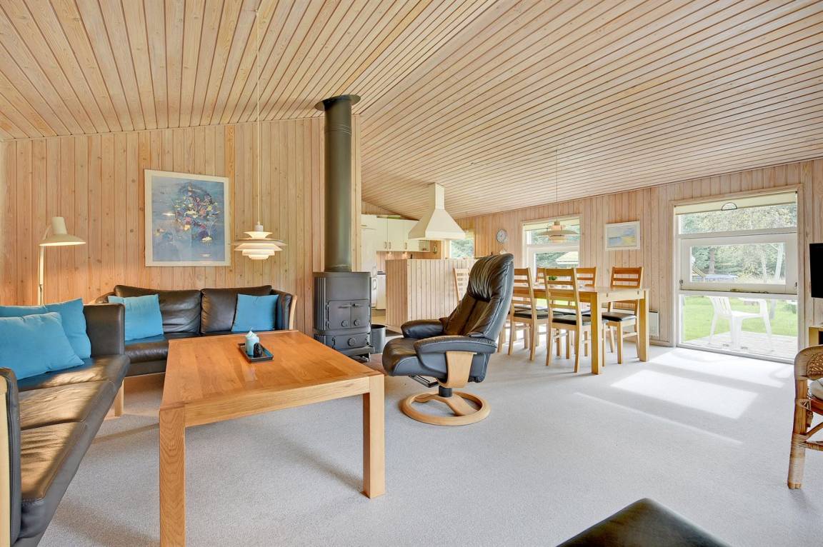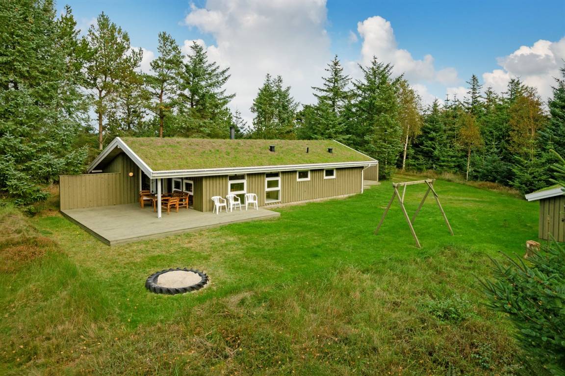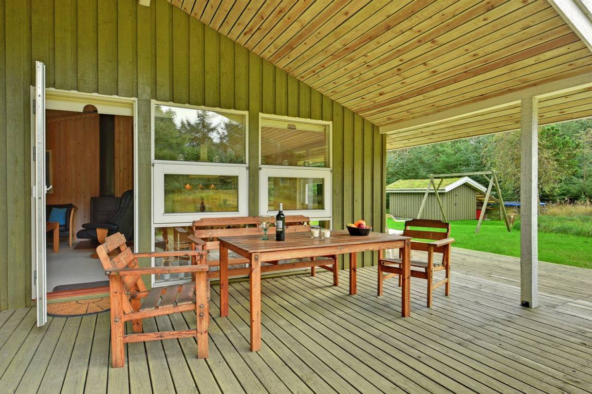 Herrliches Ferienhaus aus Holz, 1986 gebaut, mit Sauna. Besonders ruhige, herrliche Lage auf einem sehr großen Naturgrundstück, zu allen Seiten von hohen Bäumen umgeben. Zum Haus gehören schöne, offene und überdachte Terrassen mit Gartenmöbeln. Für die Kinder Sandkiste und Schaukel auf dem Grundstück. Teils Teppichböden, teils Linoleumböden. Die Wände und Decken sind aus rustikalem Kiefernholz. Die neue Küche (2009) enthält u. a. Geschirrspüler, Mikrowelle, Tiefkühlgerät und Waschmaschine. Kaminofen, Stereoanlage mit CD-Spieler sowie TV mit digitalem Satellitenanschluss, DVD-Spieler und Video im Wohnzimmer. Duschnische und beheizter Klinkerboden im Badezimmer. Von hier direkter Zutritt zur Sauna. Kinderbett vorhanden. Ein prachtvolles, gut eingerichtetes Ferienhaus. Attraktive Lage für Urlauber die einen Urlaub in schöner Natur verbringen möchten.