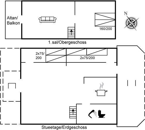 SchlafverhältnisseDie Schlafplätze verteilen sich auf 3 Schlafräume. 2 Schlafplätze in einem Doppelbett. 4 Schlafplätze in Einzelbetten. Ferner steht ein Kinderbett zur Verfügung.
