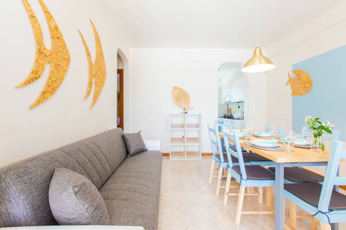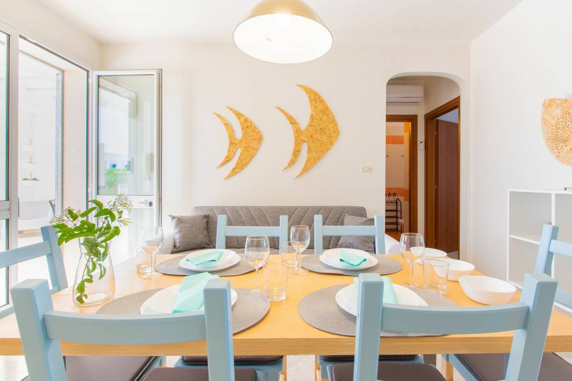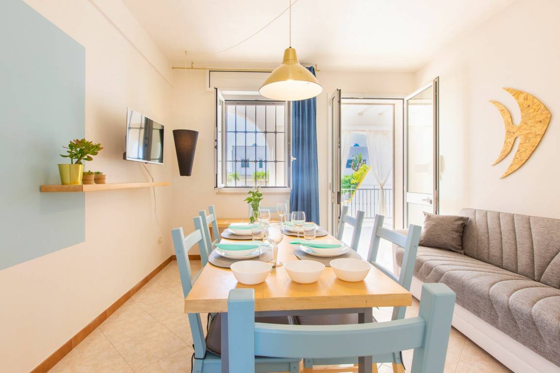 App. Cristallo (70 m²) ist eine zwei-Zimmer Wohneinheit, die auf zwei Stockwerke gebaut ist, mit eins Badezimmer. Hier können bis zu fünf Gäste schlafen. Einige Zimmer sind für Ihren Komfort mit Klimaanlage ausgestattet (siehe bitte die Zimmer Einzelheiten hier unten).