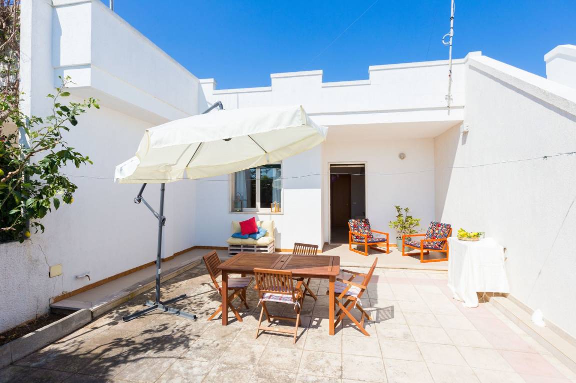 Garten: Grill, Außenbereich für das Essen im Freien, Esstisch (Personen: 5), Gartenmöbel, Sonnenliege, eingezäunt, umzäuntes Grundstück.