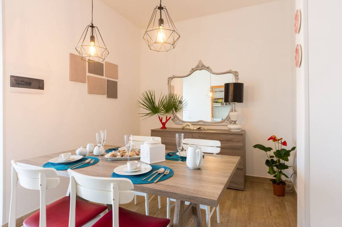 Wohnzimmer: Esstisch (Personen: 5), WiFi Internet, Ausgang auf die Veranda.