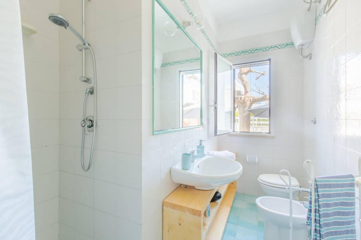 Badezimmer 1: Waschbecken, WC, Bidet, Dusche, Fön, Waschmaschine.
