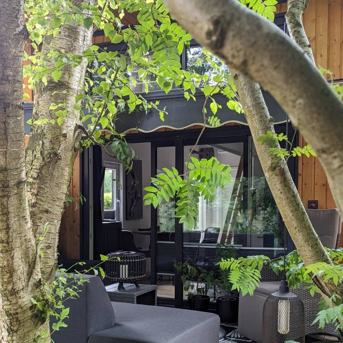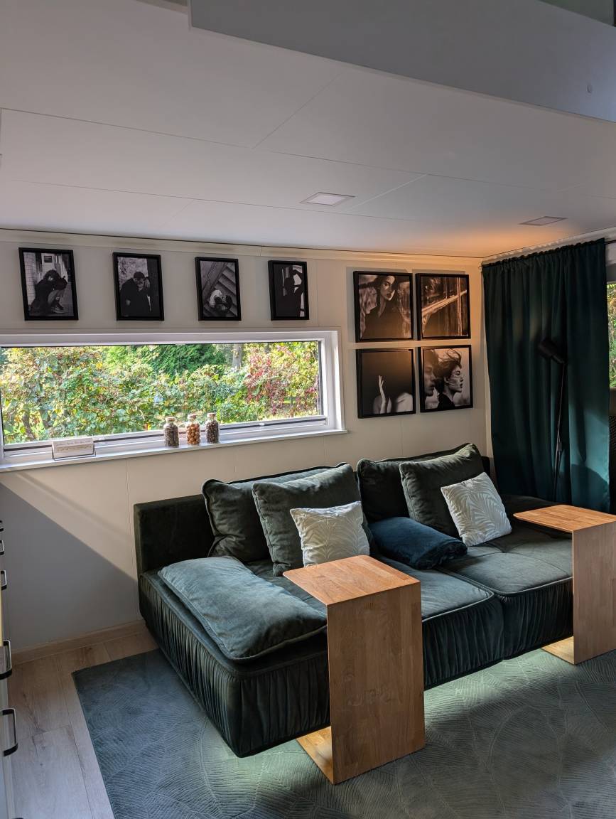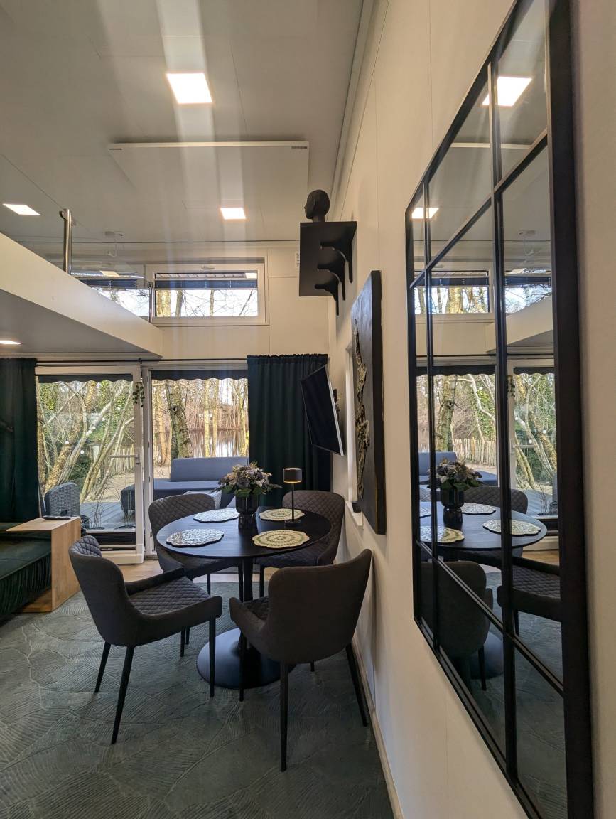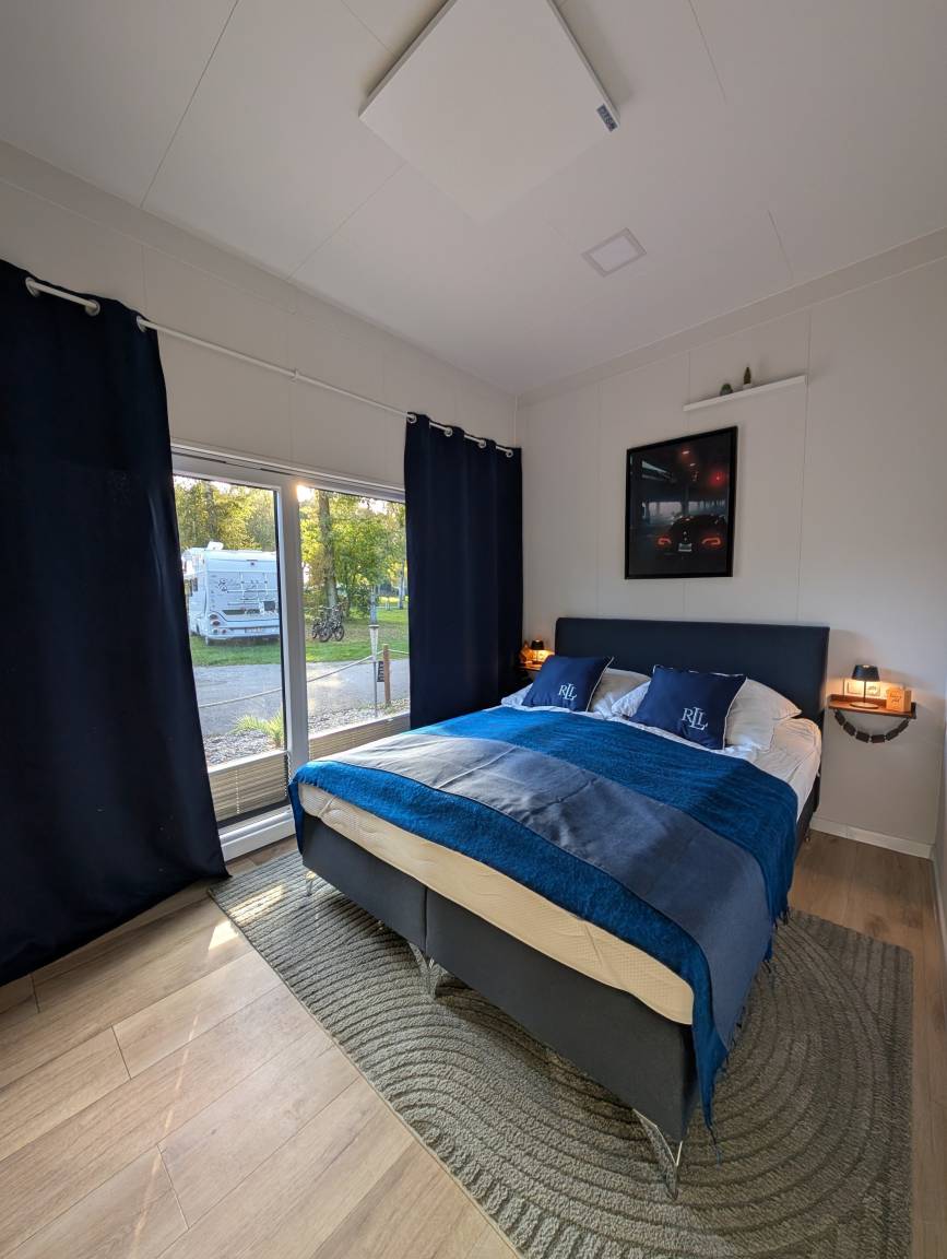 Unser Tinyhouse "Nelson" ist 32qm groß und liegt direkt am privaten Badestrand.