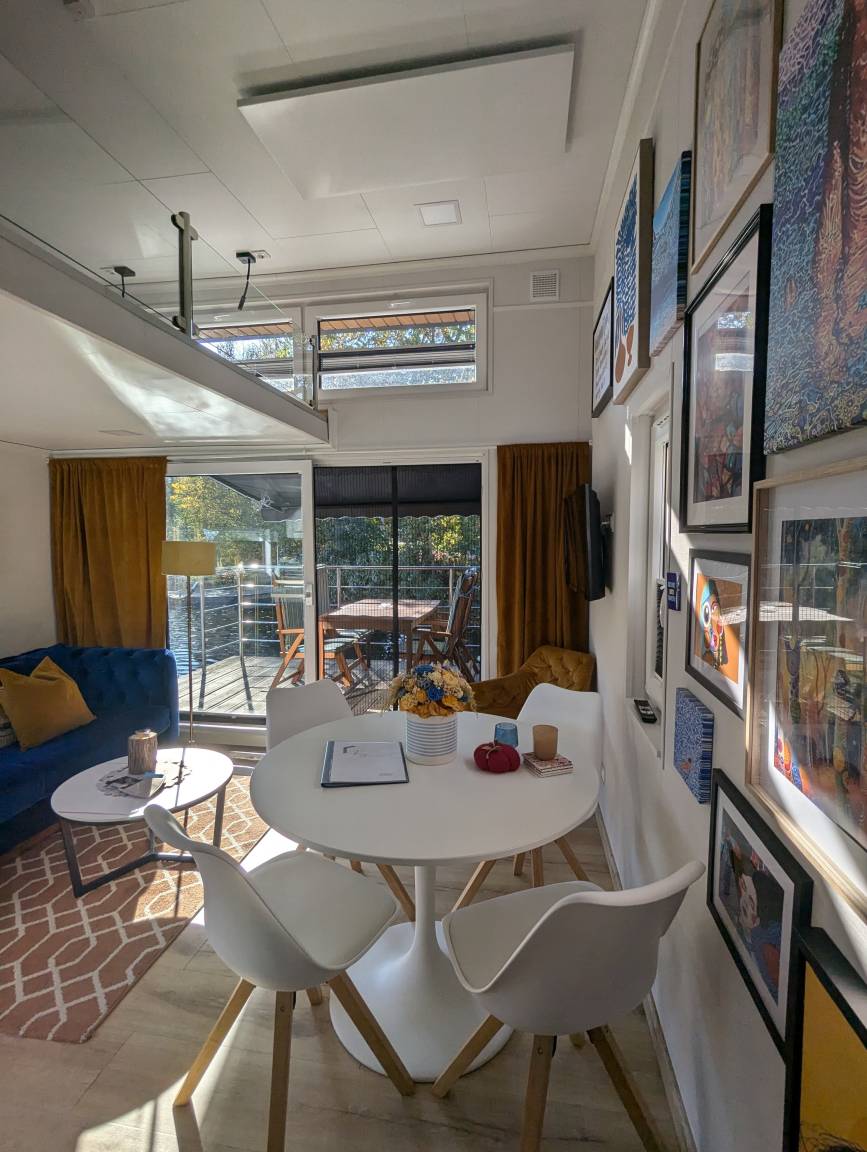 Das Tinyhouse hat ein seperates Schlafzimmer mit einem wunderschönen Blick auf den See.