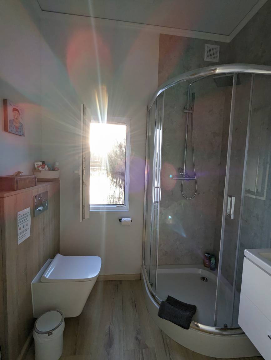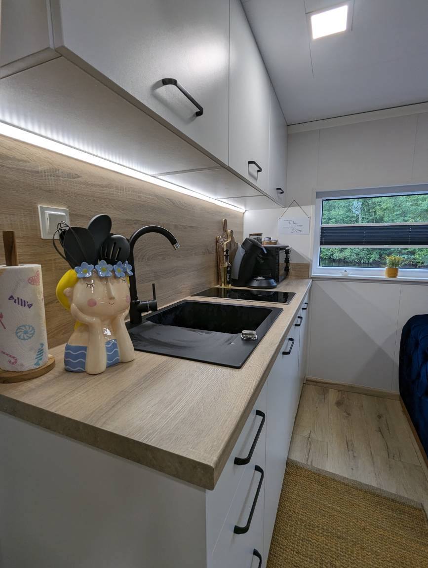 Unser Tinyhouse "Lena" ist 32qm groß und liegt auf dem See direkt am privaten Badestrand.