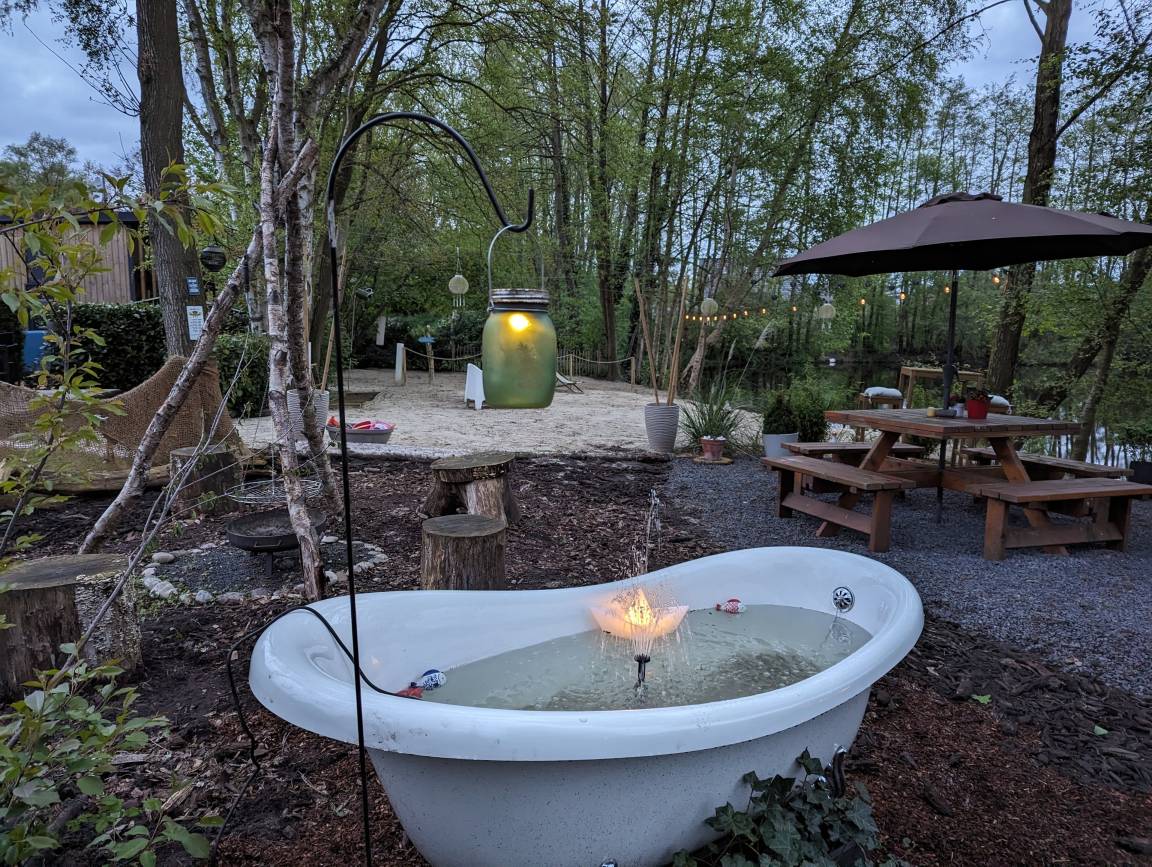 Auf dem Campingplatz befindet sich ein Spielplatz, ein Fahrradverleih, ein Bistro, ein kleiner Spazierweg um unseren See, ein Badestrand, sowie ein Volleyballfeld (die Bälle finden Sie in Ihrem Tinyhouse).