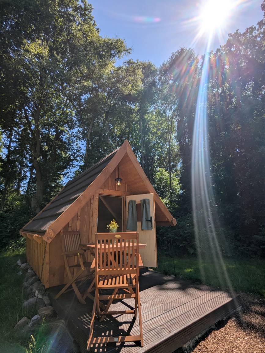 Auf 8 qm finden sie eine einfache aber komfortable Ausstattung mit Doppelbett und Schrank. Die Sanitäranlagen des Campingplatzes sind ca. 100 m entfernt und können kostenfrei mit genutzt werden.