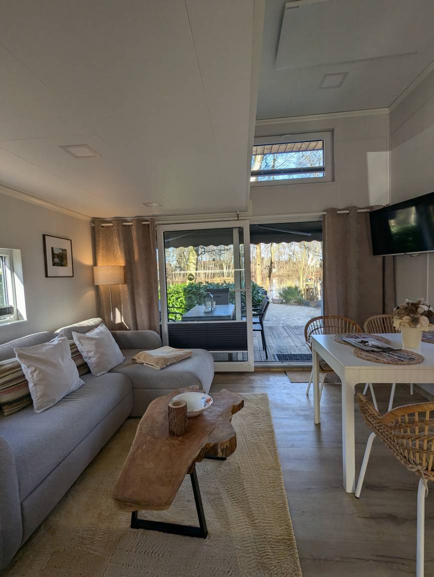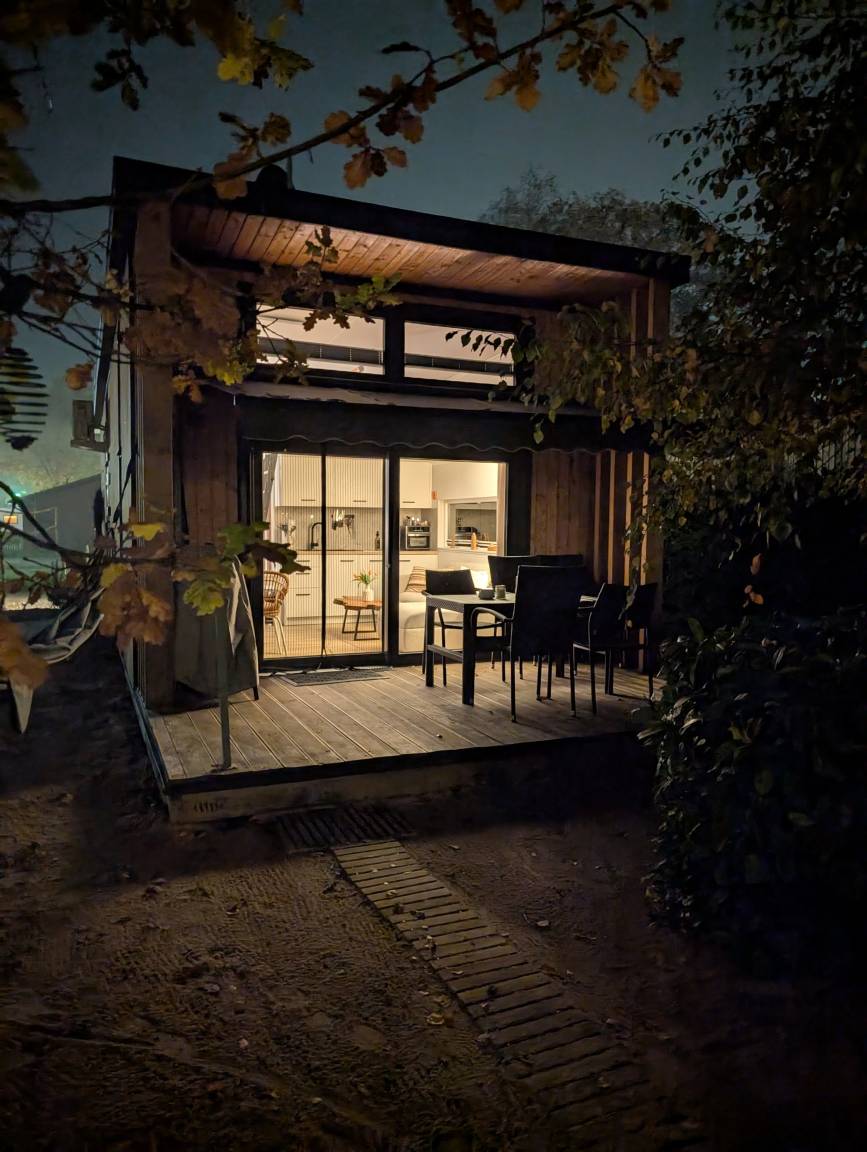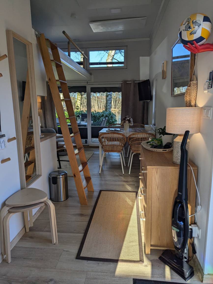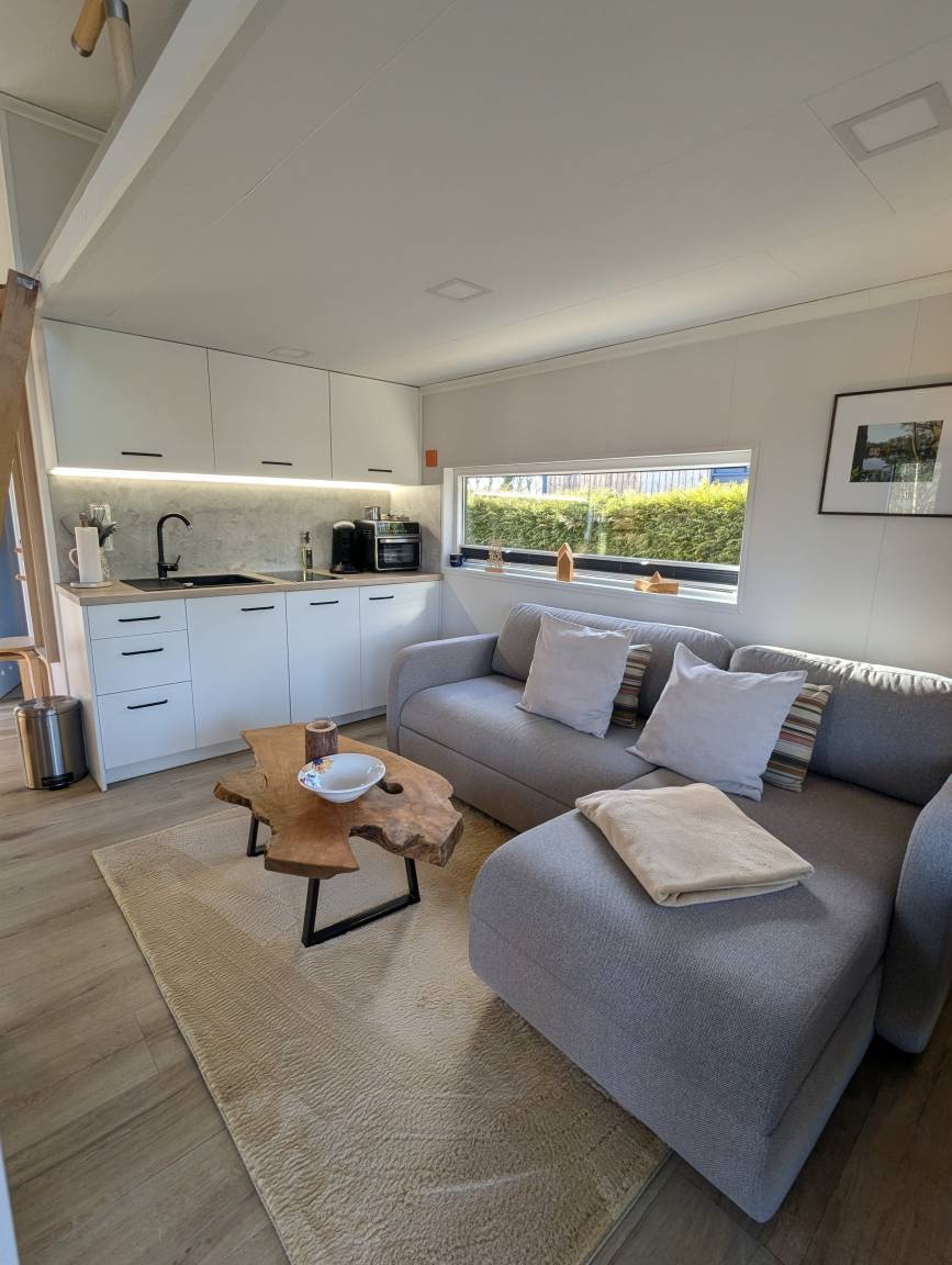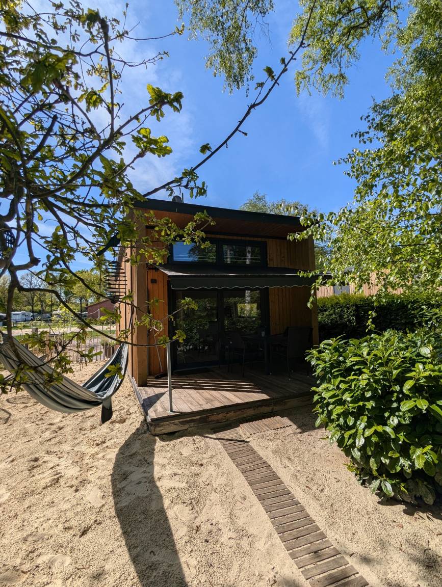 Unser Tinyhouse "Daniel" ist 32qm groß und liegt direkt am privaten Badestrand.