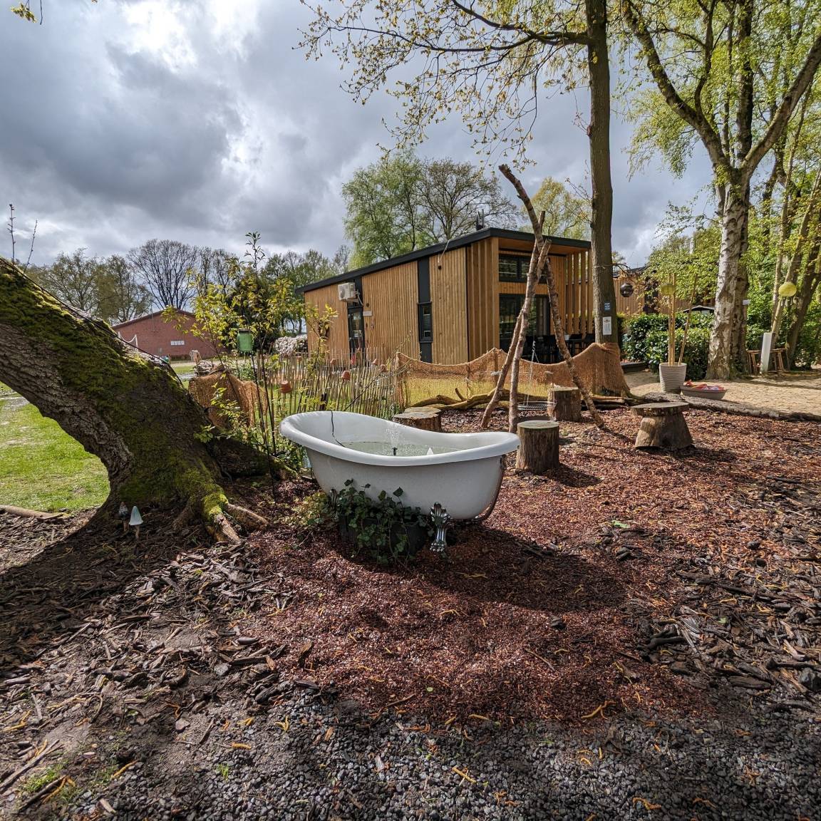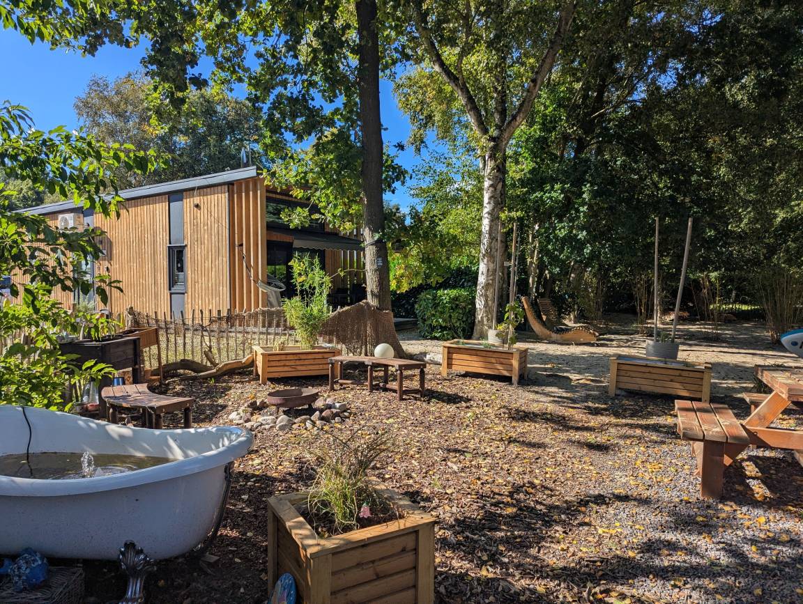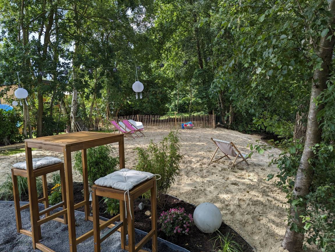 Auf dem Campingplatz befindet sich ein Spielplatz, ein Fahrradverleih, ein Bistro, ein kleiner Spazierweg um unserem See, ein Badestrand, sowie ein Volleyballfeld (die Bälle finden Sie in Ihrem Tinyhouse).