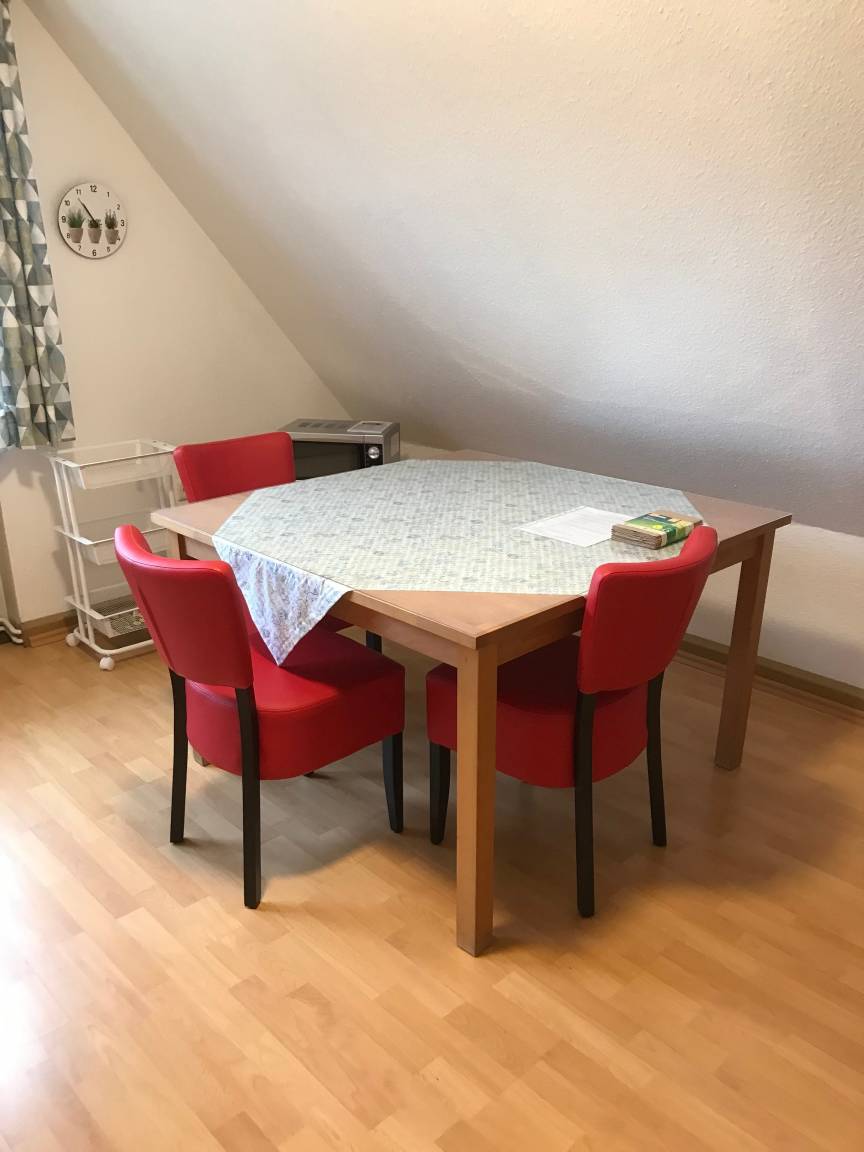 2 km vom Rathaus. Das Apartment verfügt über 1 Wohnzimmer mit Schlafsofa, 1 Schlafzimmer mit Doppelbett, 1 Küche mit Sitzgelegenheit, Kaffeemaschine, Senseokaffemaschine, Wasserkocher, Mikrowelle, Herd, Backofen und Kühlschrank mit Gefrierfach, Toaster, Gefrierschrank, 1 Bad mit Badewanne, WLAN und Benutzung von Waschmaschine und Trockner kostenlos, ebenso freies Parken auf dem Grundstück, Bettwäsche und Handtücher inklusive. Ihre Fahrräder können Sie in der Garage unterstellen und dort auch Ihre E-Bikes aufladen.
