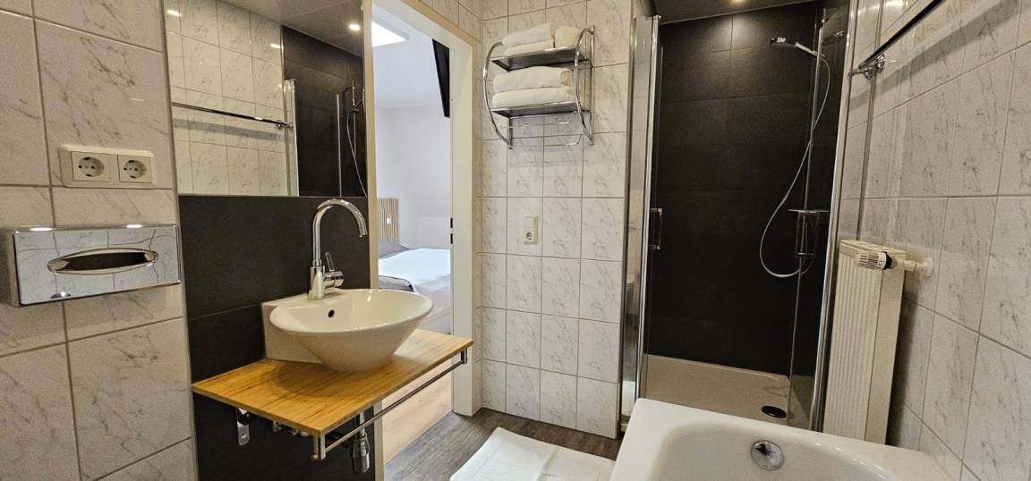 Dieses Doppelzimmer bietet Ihnen alles, was Sie für einen angenehmen Aufenthalt benötigen. Die durchdachte Einrichtung und die praktischen Annehmlichkeiten machen es zum perfekten Rückzugsort nach einem erlebnisreichen Tag in Papenburg.