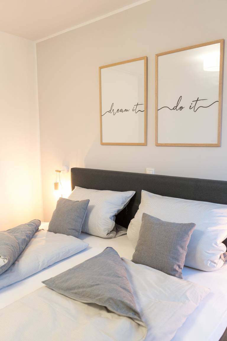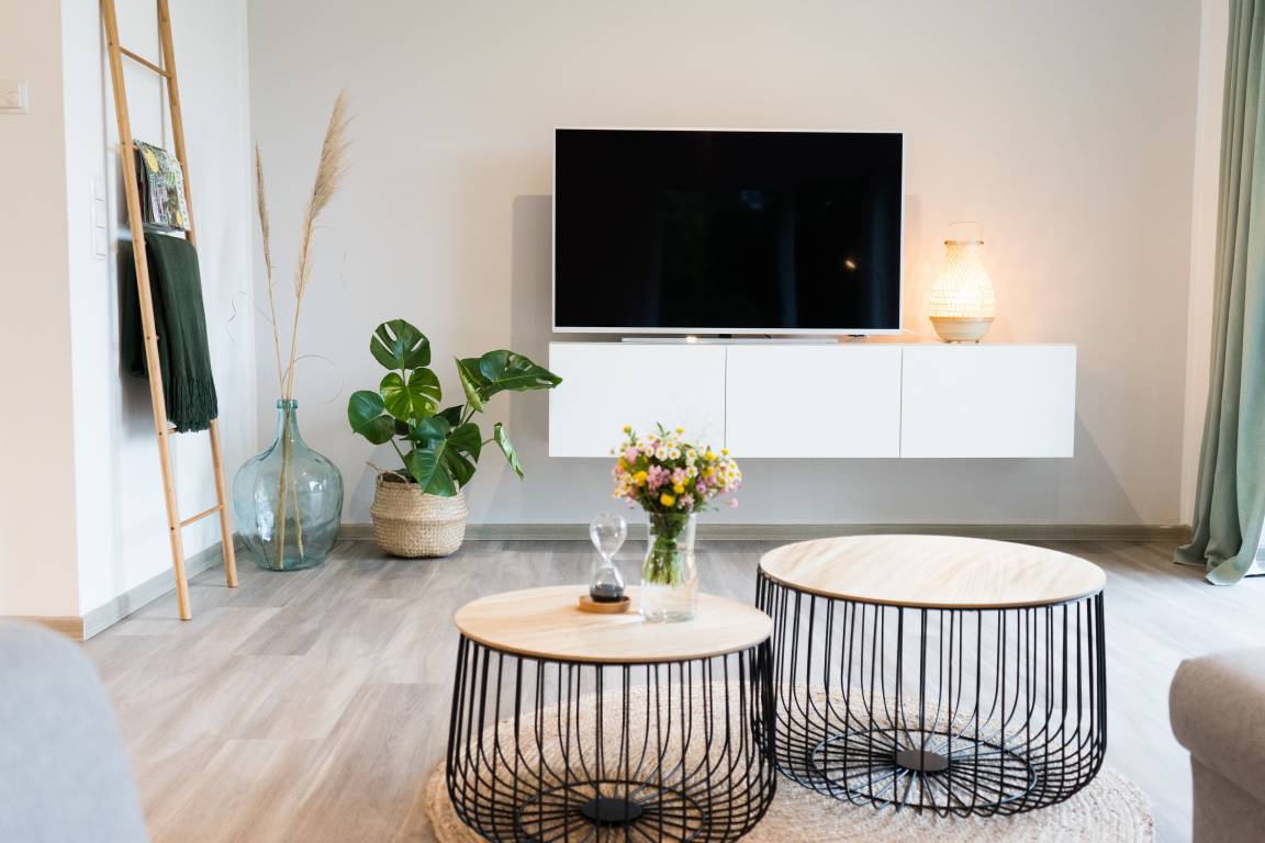 Jedes der 3Häuser wurde mit Liebe zum Detail und auf hohem Niveau ausgestattet. Hierzu zählen sowohl die gemütlichen Boxspringbetten in den zwei Schlafzimmern als auch die Smart-TVs, das kostenfreie WLAN und die erstklassig eingerichteten, offenen Wohnküchen. Die am Haus gelegenen Carports und Parkplätze mit direktem Zugang zur e-Ladestation runden unser Angebot für Sie ab.