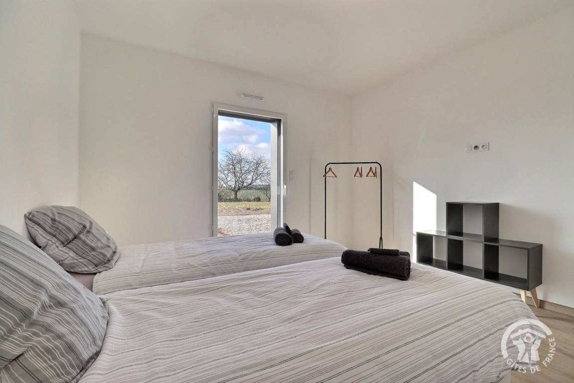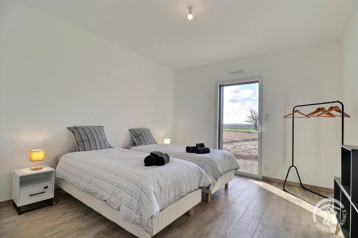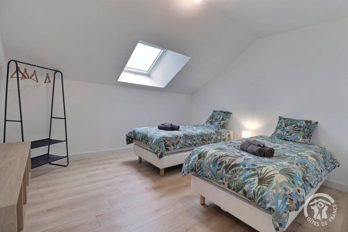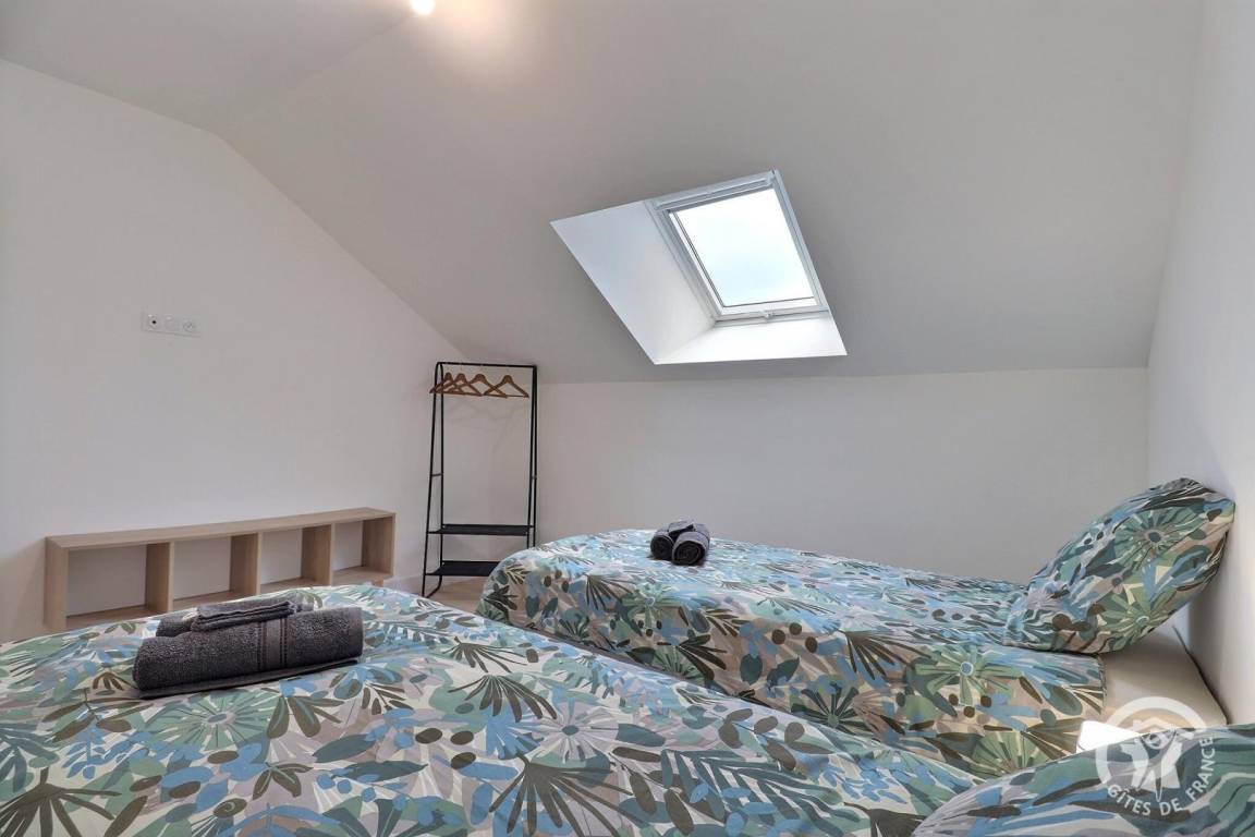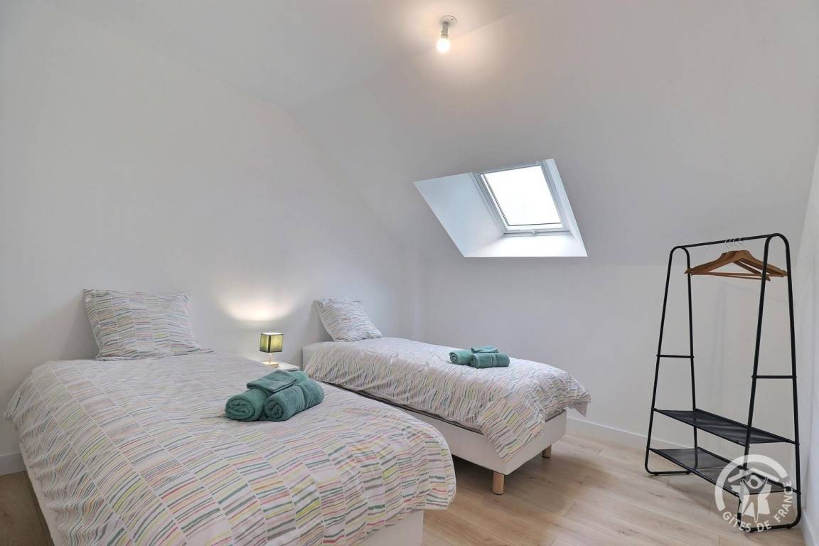 - ein Schlafzimmer mit zwei 90X200 Betten, die in ein Doppelbett umgewandelt werden können, mit direktem Zugang zur Terrasse