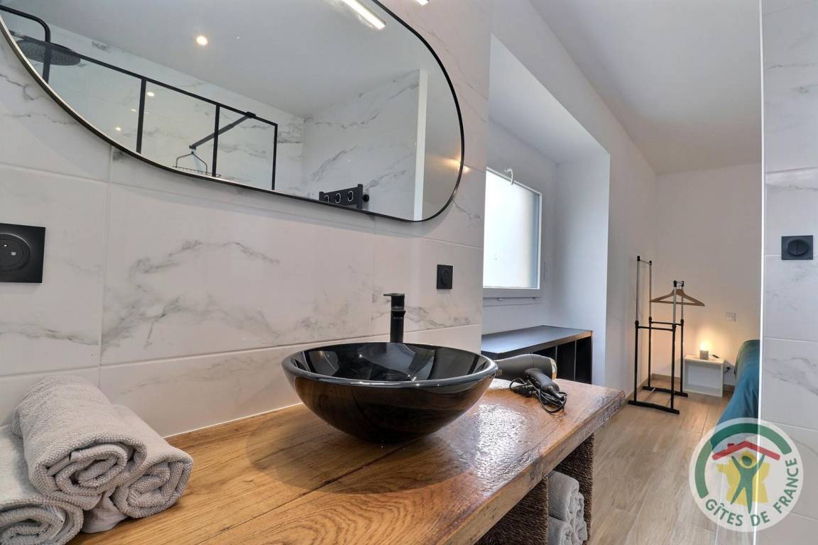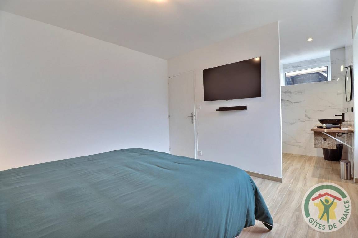 „Très bon séjour, accueil pratique et sympathique. Cadre champêtre, dommage que la vue ne soit pas terrible (hangar à 10m du gîte). Pour le reste c'est parfait, très propre, bien équipé, moderne, spacieux et calme. Merci pour le séjour !“