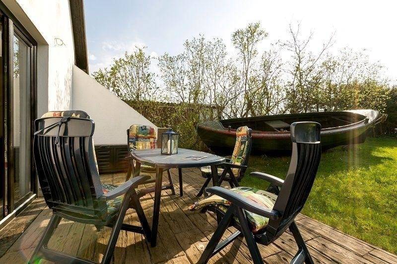Das Ferienhaus '"Fischerhütte" befindet sich mit drei weiteren Ferienquartiere auf einem 3000 m² großen Gartengrundstück mit altem Obstbaumbestand. Es gibt zwei Sonnenterrassen für Frühstück und Abends nach Westen. Für jeden Gast ist ausreichend privater Platz vorhanden. Kinder können sich austoben und sind sicher. Haustiere sind willkommen.